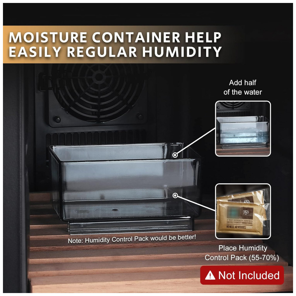 CAPACIDADE DE 150 CONTAS E PRATELEIRAS AJUSTÁVEIS Este humidor fornece 2 prateleiras de madeira ajustáveis e 1 gaveta de madeira ajustável, pode zenar até 150 unidades