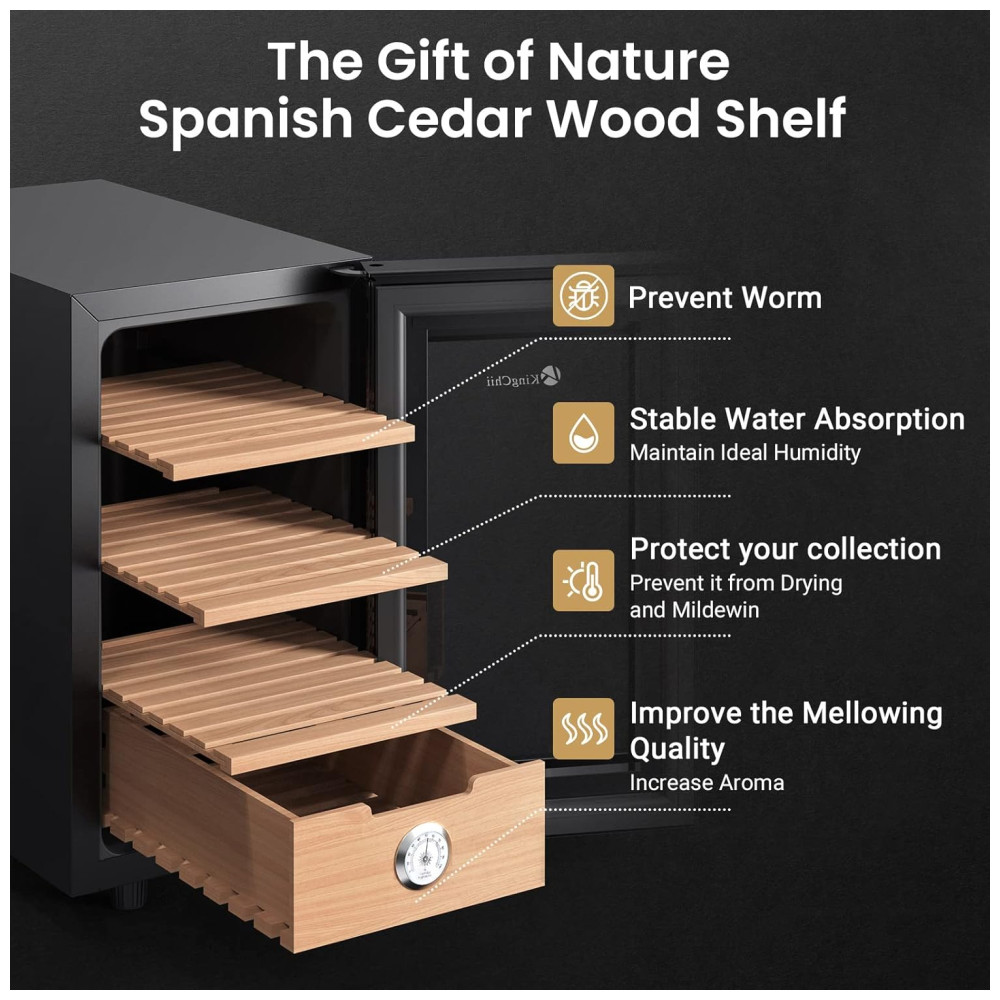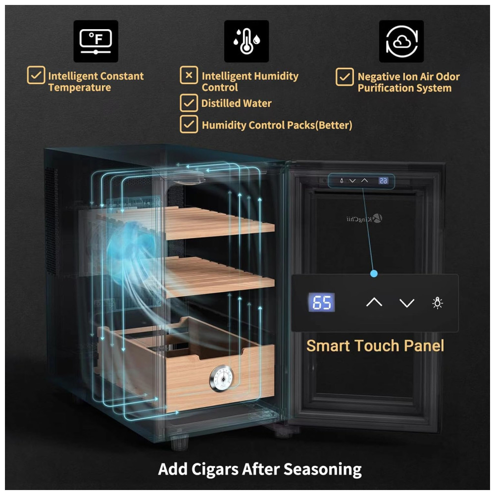 Umidor Elétrico para Charutos 23L com Prateleiras e Higrômetro 110 Volts KingChii Preto
