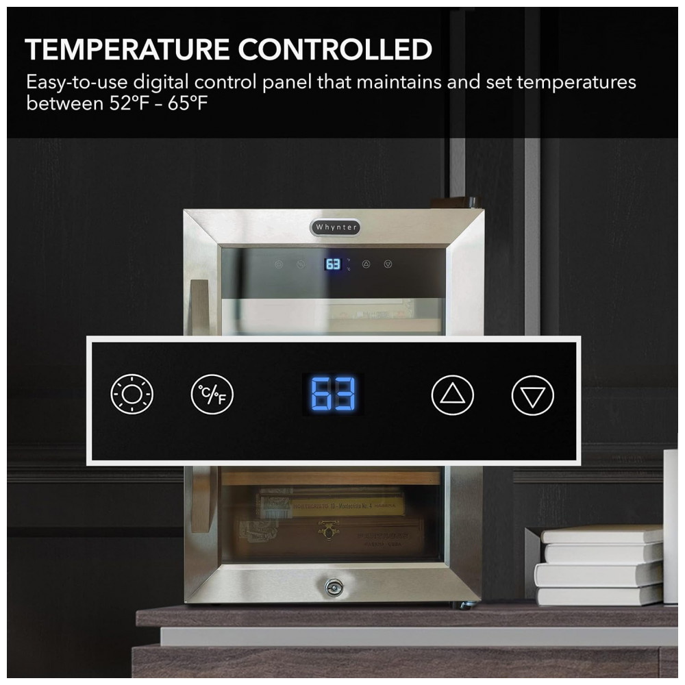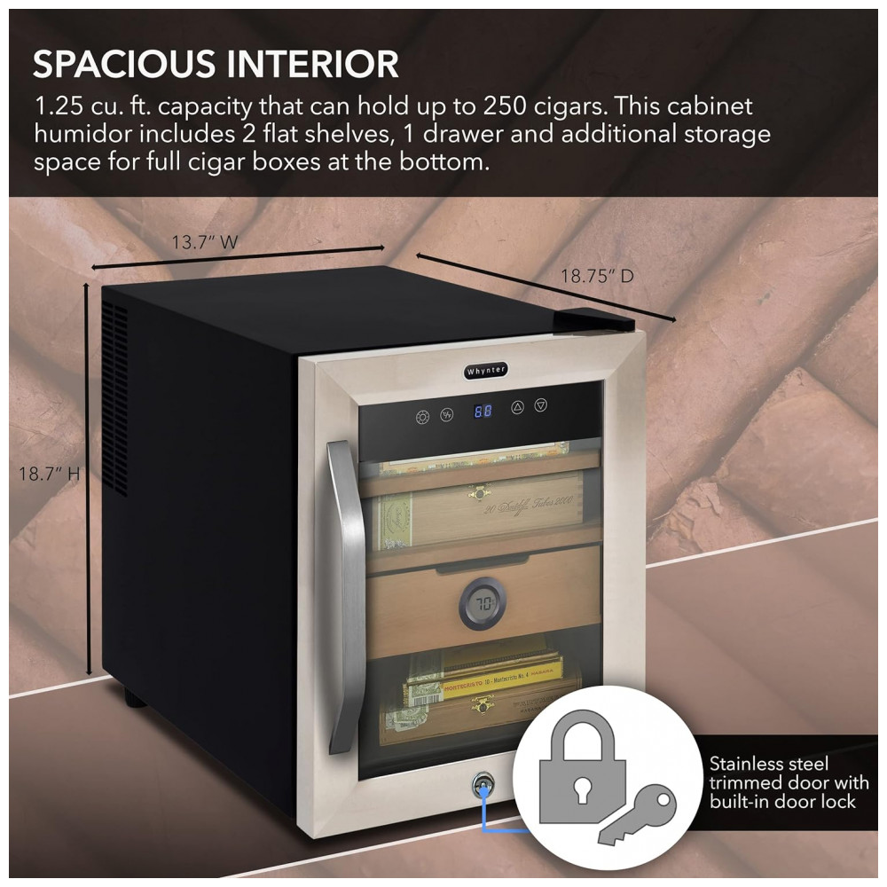 Umidor Elétrico para Charutos 250 Unidades com Prateleiras e Higrômetro 110 Volts Whynter CHC123DS Marrom e Preto