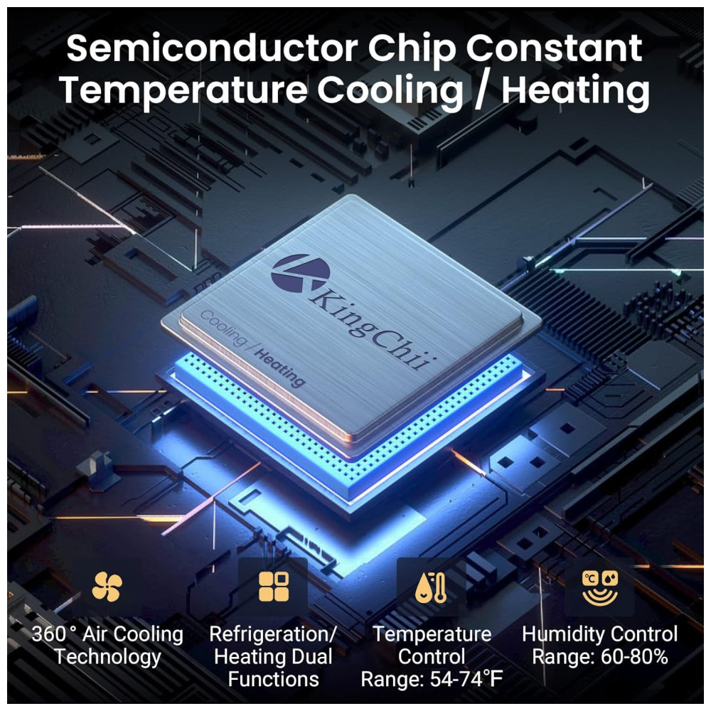 Refrigerado a ar e sem gelo e mudoUsando tecnologia de refrigeração eletrônica semicondutora, faixa de temperatura constante 15 22C baixo ruído 38 dB. O gabinete Kingchii fornece um ambiente de temperatura estável.