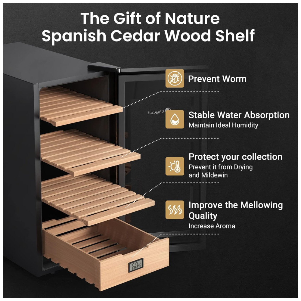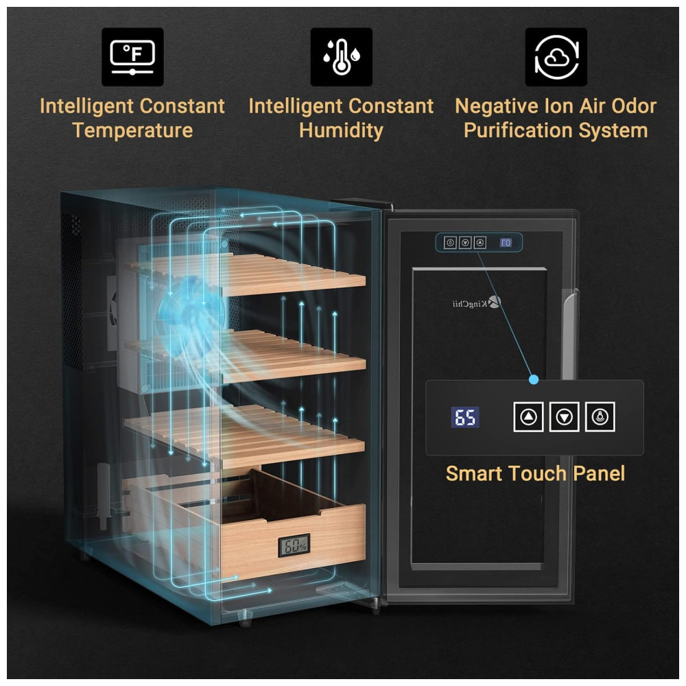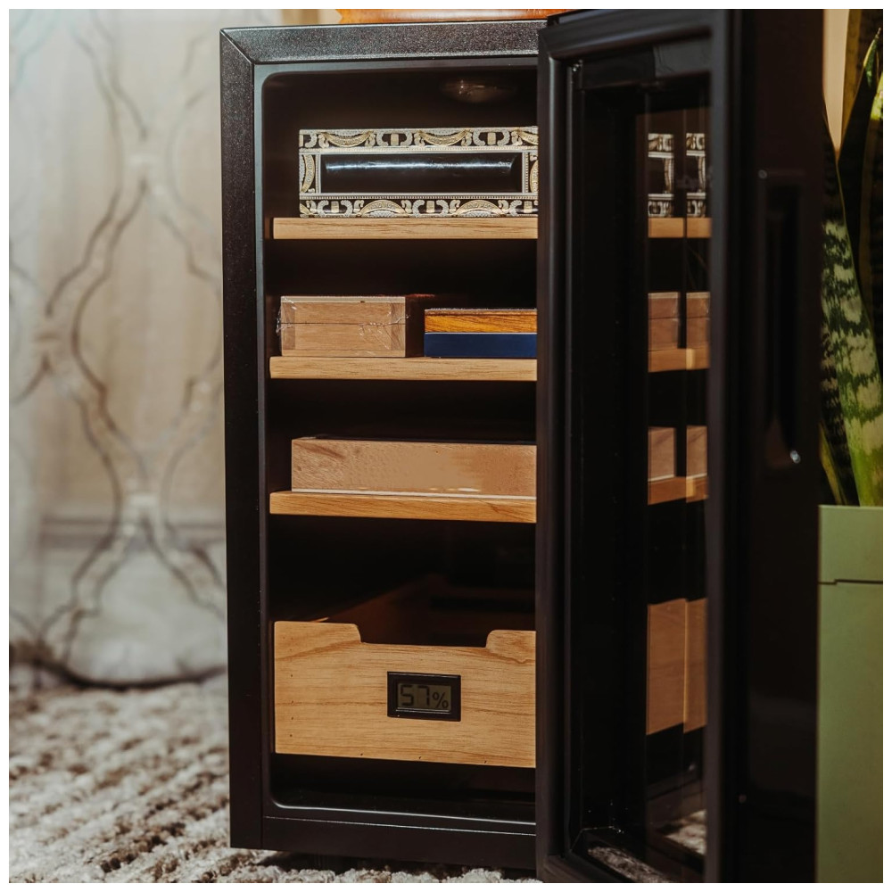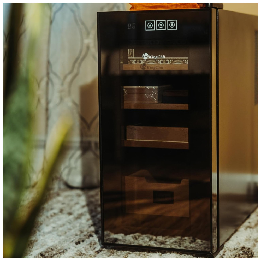 Umidor Elétrico para Charutos 26L com Prateleiras e Higrômetro 110 Volts KingChii Preto