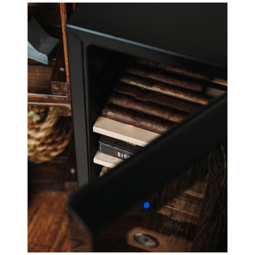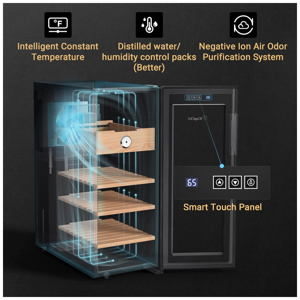 Umidor Elétrico para Charutos 33L com Prateleiras e Higrômetro 110 Volts KingChii Preto