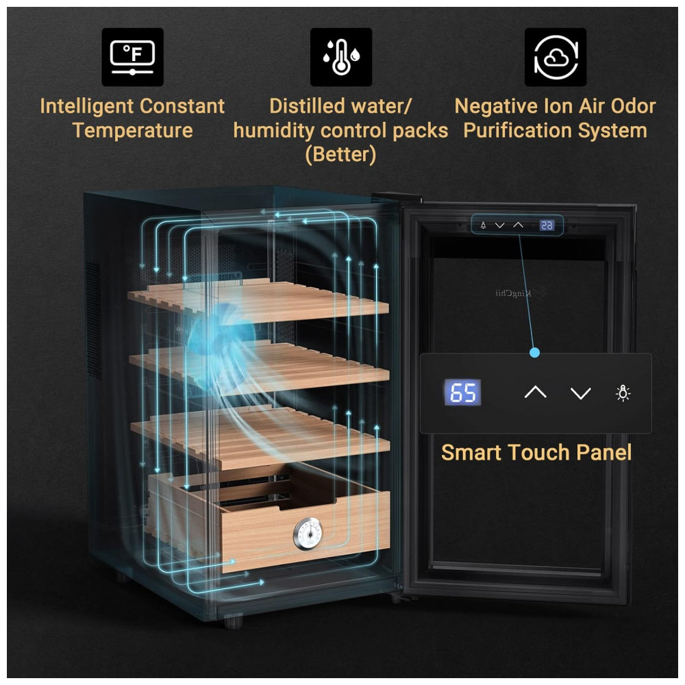 Umidor Elétrico para Charutos 48L com Prateleiras e Higrômetro 110 Volts KingChii Preto