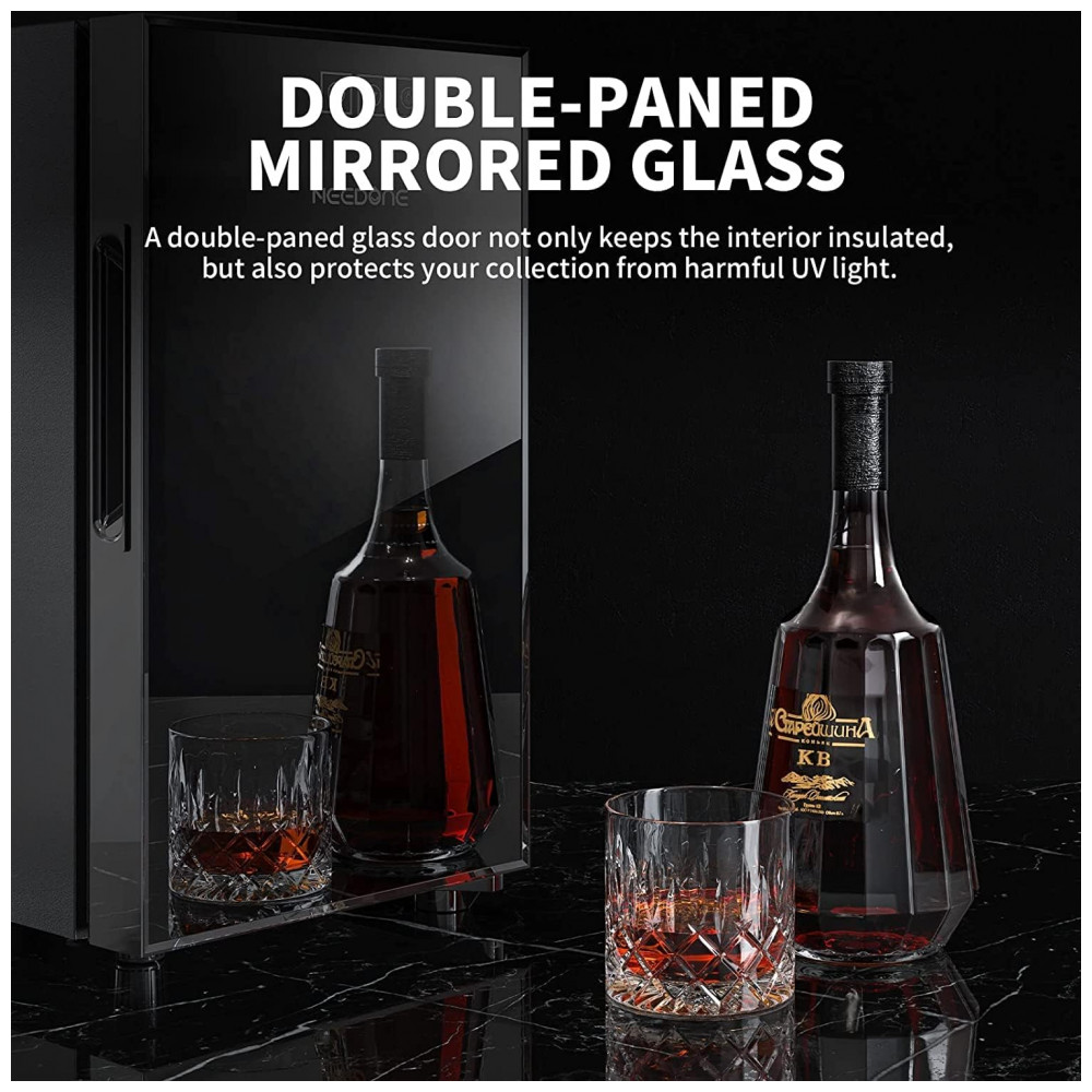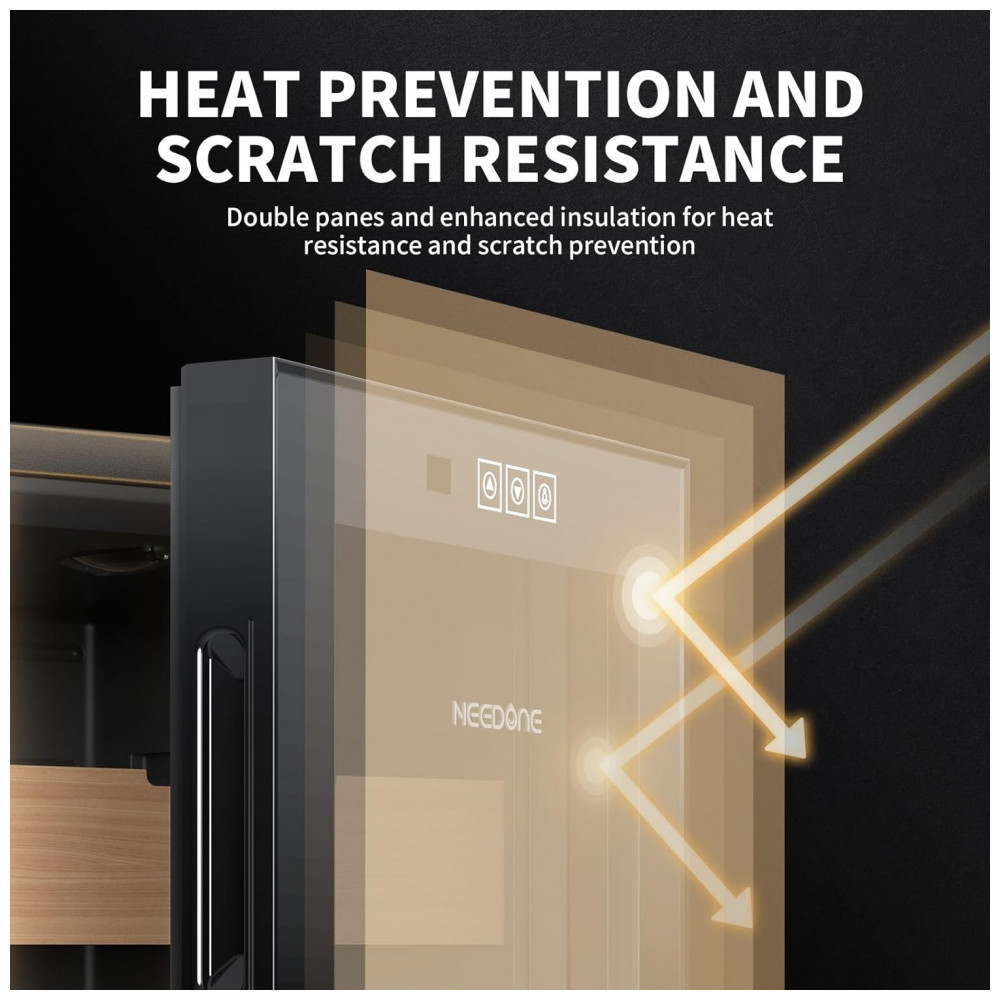 PORTA DE PAINEL DUPLO E CONTROLE DE TOQUE Este gabinete refrigerador possui um design de porta de vidro temperado oco de camada dupla. O vidro externo é isolante, sombreia e impede efetivamente os raios ultravioleta, enquanto o vidro interno desempenha um bom papel na preservação do calor. O controle de toque do painel de vidro, simples e elegante, evita a abertura frequente da porta, ajudando a manter a temperatura e a umidade estáveis.