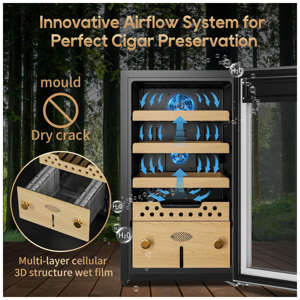 Umidor Elétrico para Charutos com Resfriamento por Compressor – Controle Premium de Umidade Caixa de 40L com Prateleiras de CedroManastin.
