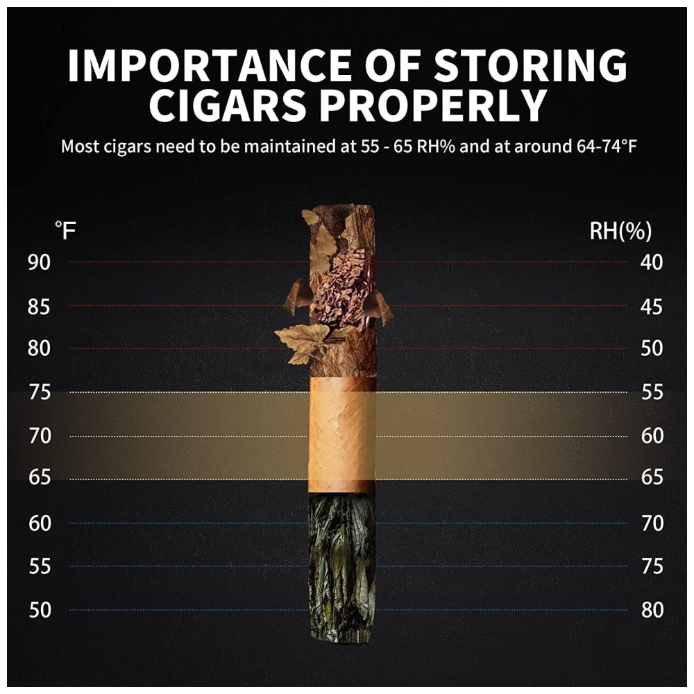 O umidor NEEDONE 48L é um armário refrigerado elétrico que oferece funções de resfriamento e aquecimento, sendo perfeito para ser usado em qualquer estação do ano. Utilizando a Tecnologia SemiHeat com chips semicondutores, mantém o clima interno preciso e constante, com níveis de ruído inferiores a 38dB, proporcionando um funcionamento ultra silencioso. Feito de cedro espanhol, o humidor promove o envelhecimento, melhora o aroma e preserva o sabor dos charutos armazenados. Com capacidade para até 350 charutos, as prateleiras e gaveta de cedro estão impregnadas com um aroma natural agradável. A porta de vidro duplo, com controle ao toque, isola raios ultravioleta e retém o calor de forma eficaz. Além disso, o sistema de resfriamento de ar de circulação 360° evita a formação de gelo e garante que a umidade seja uniformemente distribuída em todas as camadas do armário. Um presente elegante e funcional para os amantes de charutos.