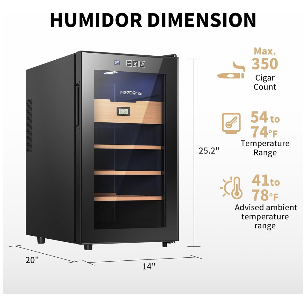 Umidor Eletrônico para Charutos 48 Litros com Controle de Temperatura Armário Refrigerado para 300 Unidades com PrateleirasNEEDONE