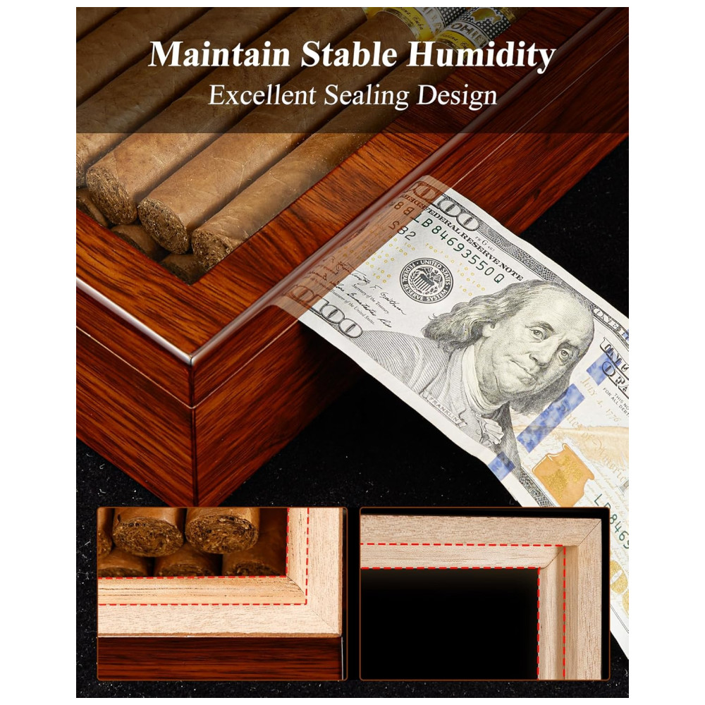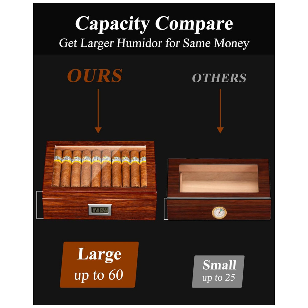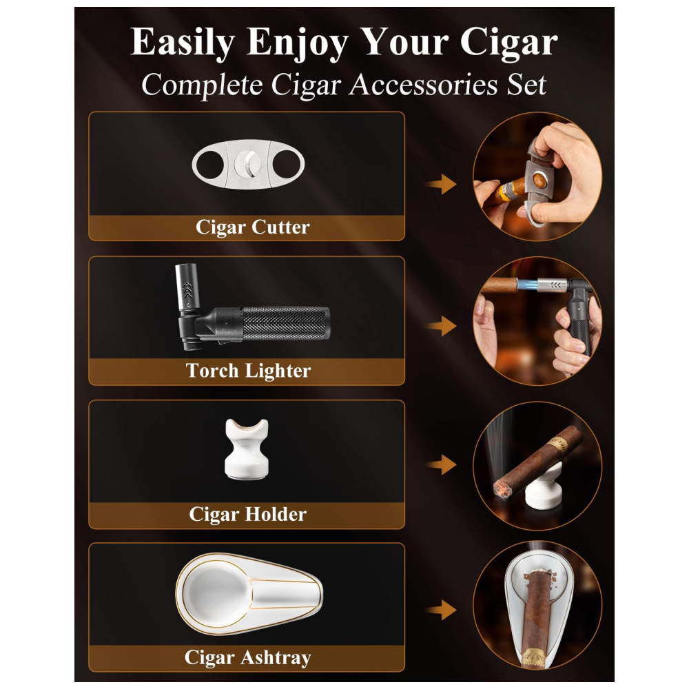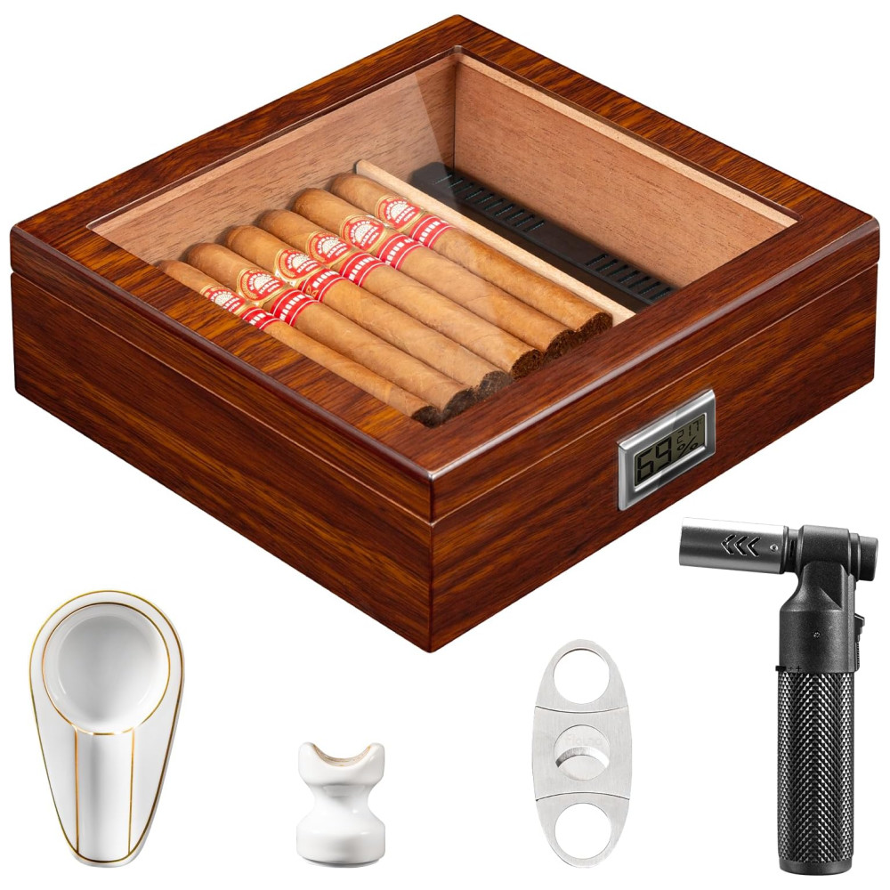 Umidor Flauno com Kit Completo: Luminária Cinzeiro Cortador Higrômetro Digital Umidificador Divisor Revestimento em Cedro – Capacidade para 60 Cigarros