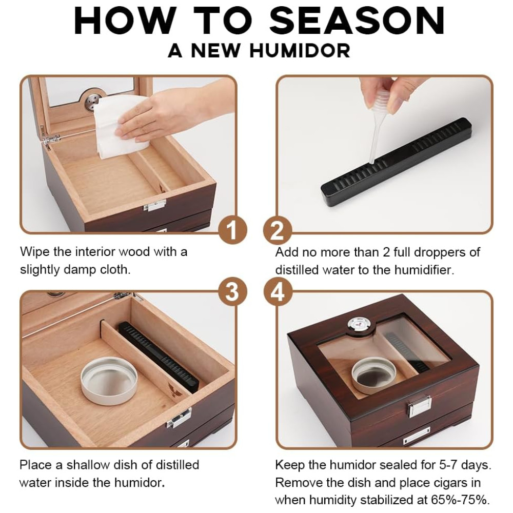 Desfrute de charutos sempre frescos com o Estojo para Charutos Bald Eagle. Equipado com um umidificador e higrômetro precisos, basta adicionar água destilada para evitar que os charutos sequem. O interior em cedro garante um ambiente hermético, mantendo a umidade ideal. Além disso, possui uma gaveta conveniente para armazenar cortadores, isqueiros e cinzeiros. Feito com folheados de cedro espanhol de alta qualidade e 100 divisórias de cedro, o estojo mantém a frescura original e confere um aroma único aos charutos. Com design magnético e fecho metálico, o estojo é robusto e seguro. Aproveite a qualidade premium do Bald Eagle!