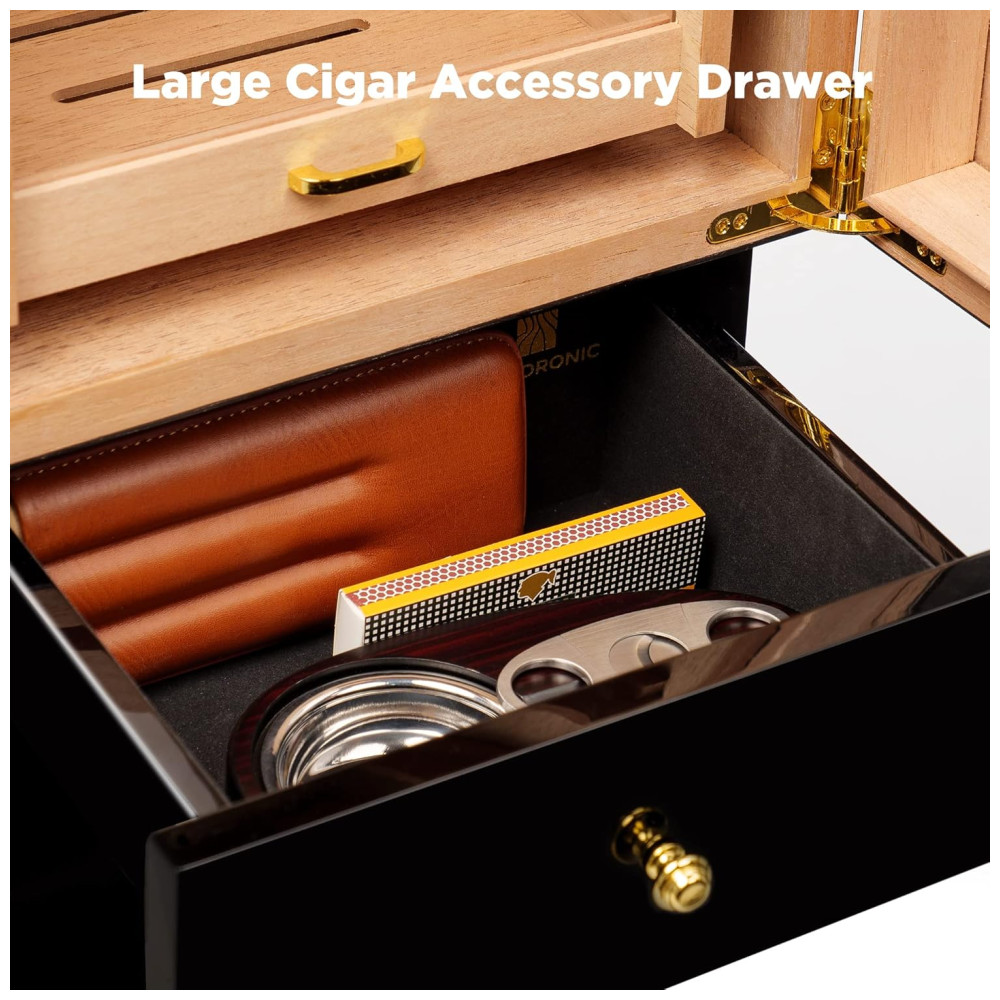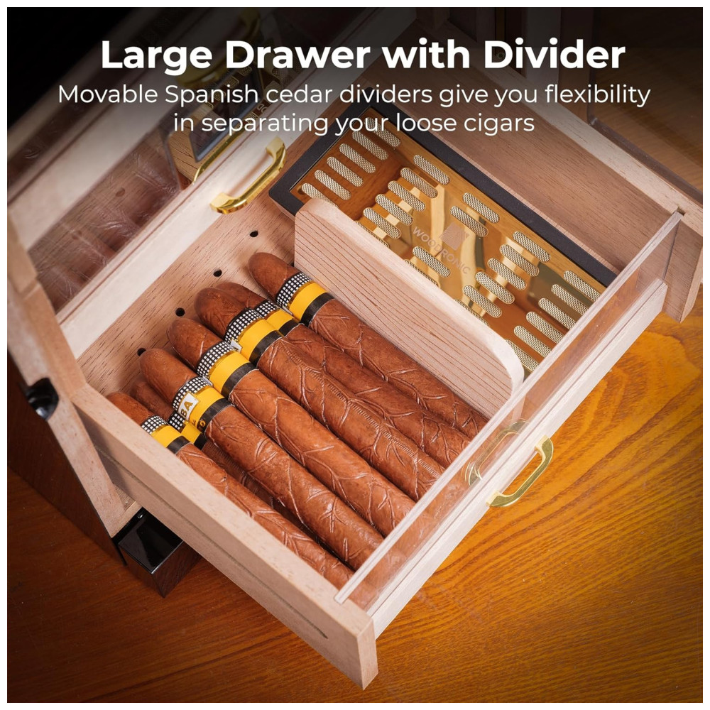Umidor para Charutos com 150 Unidades Gaveta p/ Acessórios Bandejas e Divisórias de Cedro Espanhol Higrômetro – Woodronic
