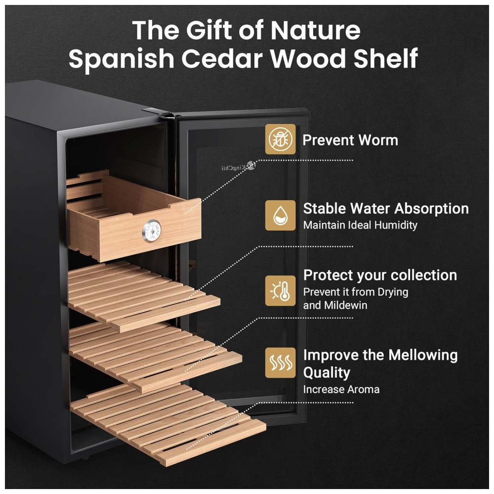 Umidor para Charutos com Controle de Temperatura e Prateleiras de Cedro Espanhol Presente de Luxo para Homens – Até 250 CharutosKINGCHII