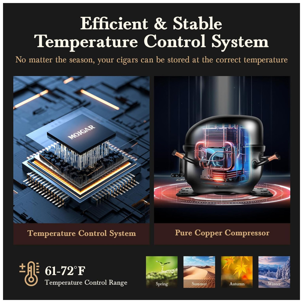 Umidor para Charutos Elétrico 115L com Capacidade para 900 Charutos Display Digital LED Controle Inteligente de Temperatura e Umidade 110V Mojgar Preto