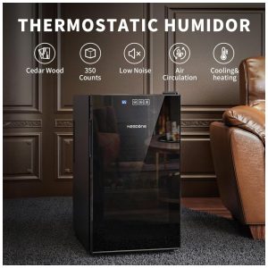 Umidor para Charutos Elétrico 115L com Capacidade para 900 Charutos Display Digital LED Controle Inteligente de Temperatura e Umidade 110V Mojgar Preto