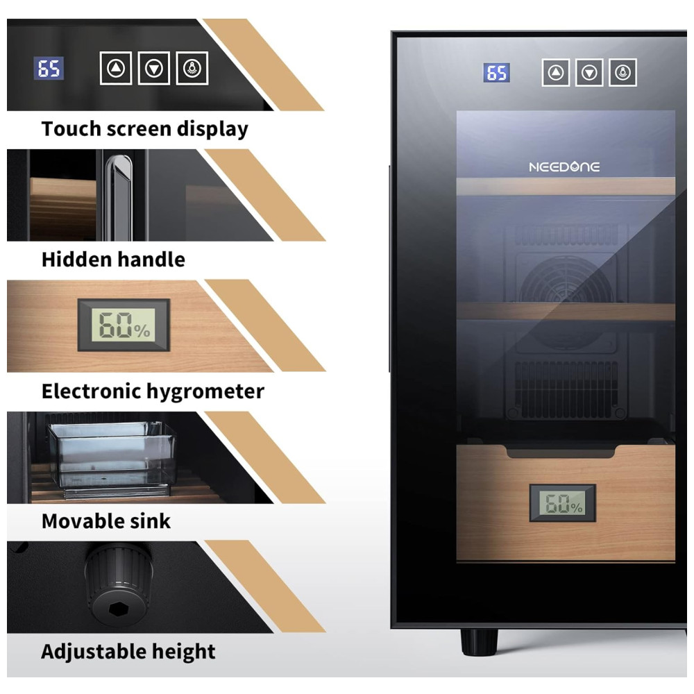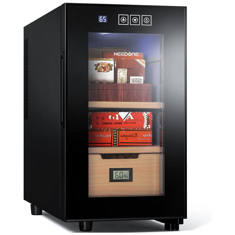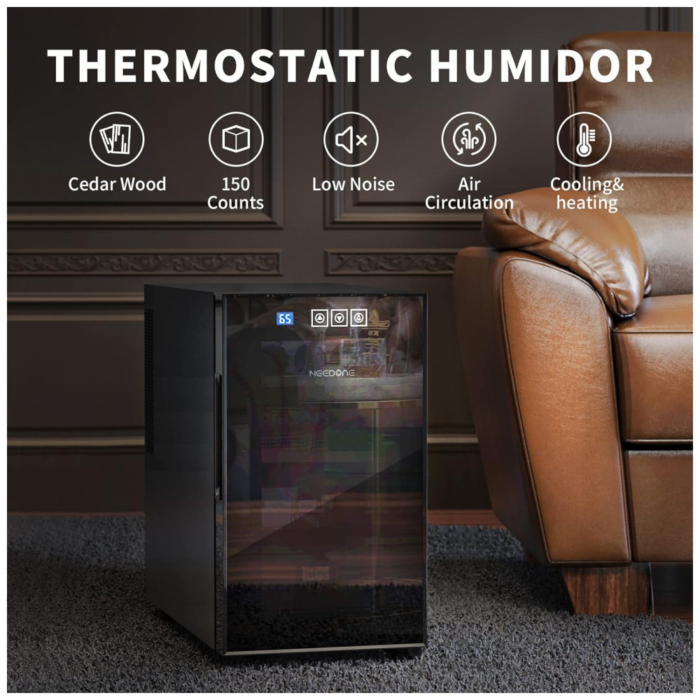Umidor para Charutos Elétrico 23L com Controle de Temperatura Higrômetro Digital e Feito em Madeira de Cedro Espanhol 110V NEEDONE NO-23B Preto