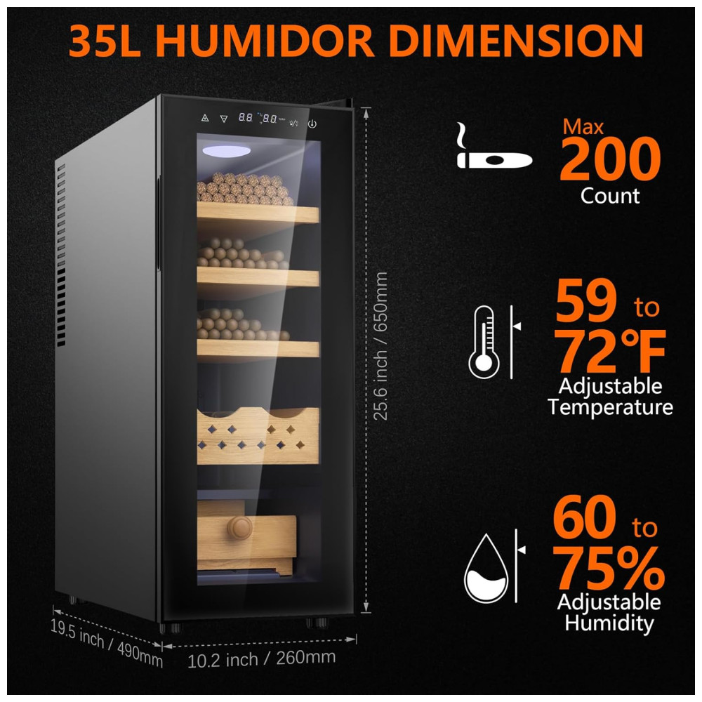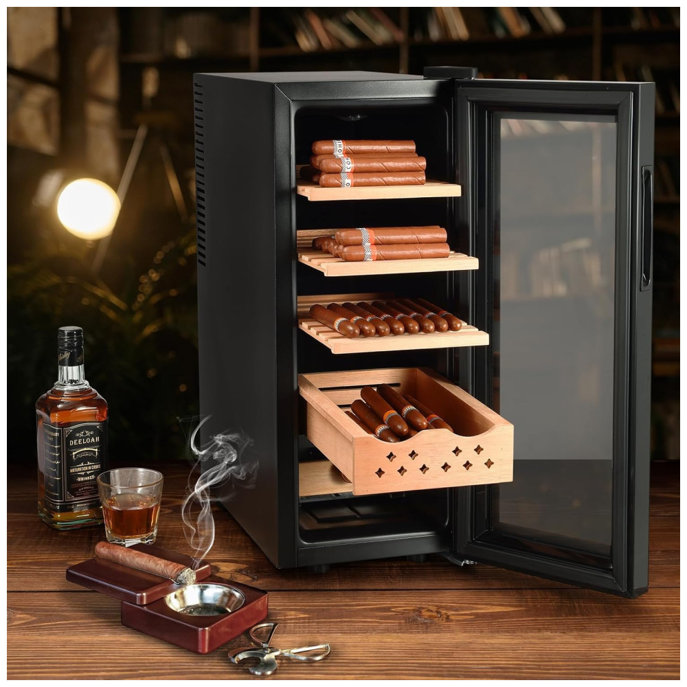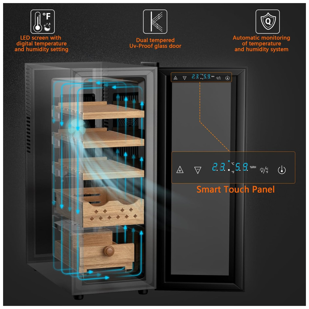 Umidor para Charutos Elétrico 35L com Controle de Temperatura e Higrômetro Digital 110V ALE POMOS Preto