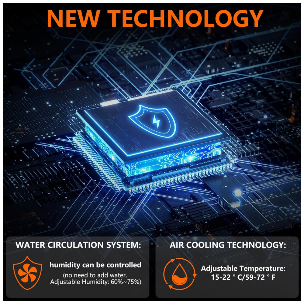 Sistema de Circulação de Água: Não é mais necessário adicionar água continuamente durante o uso. Ele regula com precisão a umidade usando um sistema de circulação de água para mantê-la constantemente entre 60% e 75%.