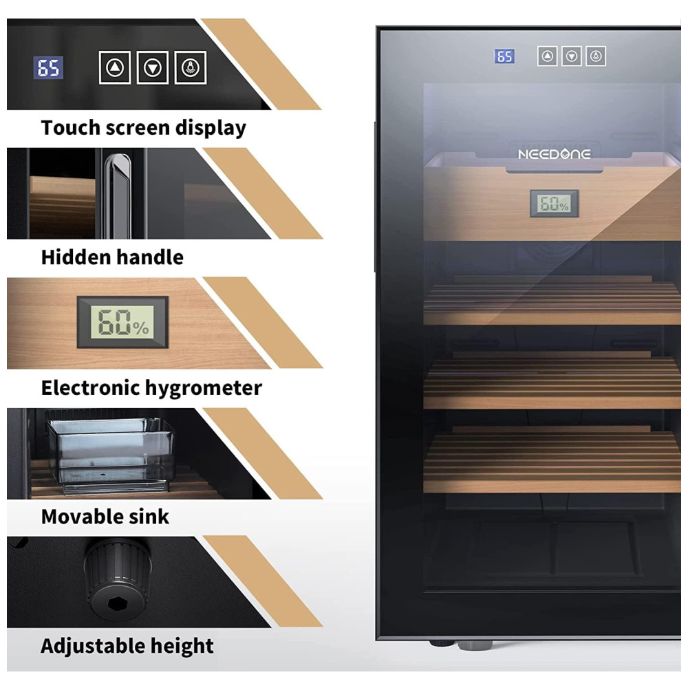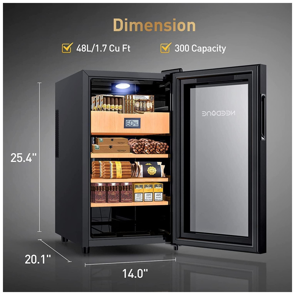 Umidor para Charutos Elétrico 48L até 300UN com Higrômetro Digital e Prateleiras em Madeira de Cedro Espanhol 110V NEEDONE Preto