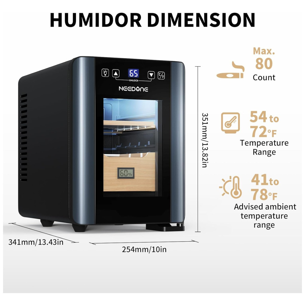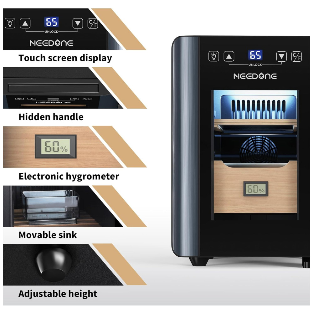 Umidor para Charutos Elétrico 8L com Controle de Temperatura e Sistema Silencioso de Refrigeração 110V NEEDONE NO-8-CH2 Preto