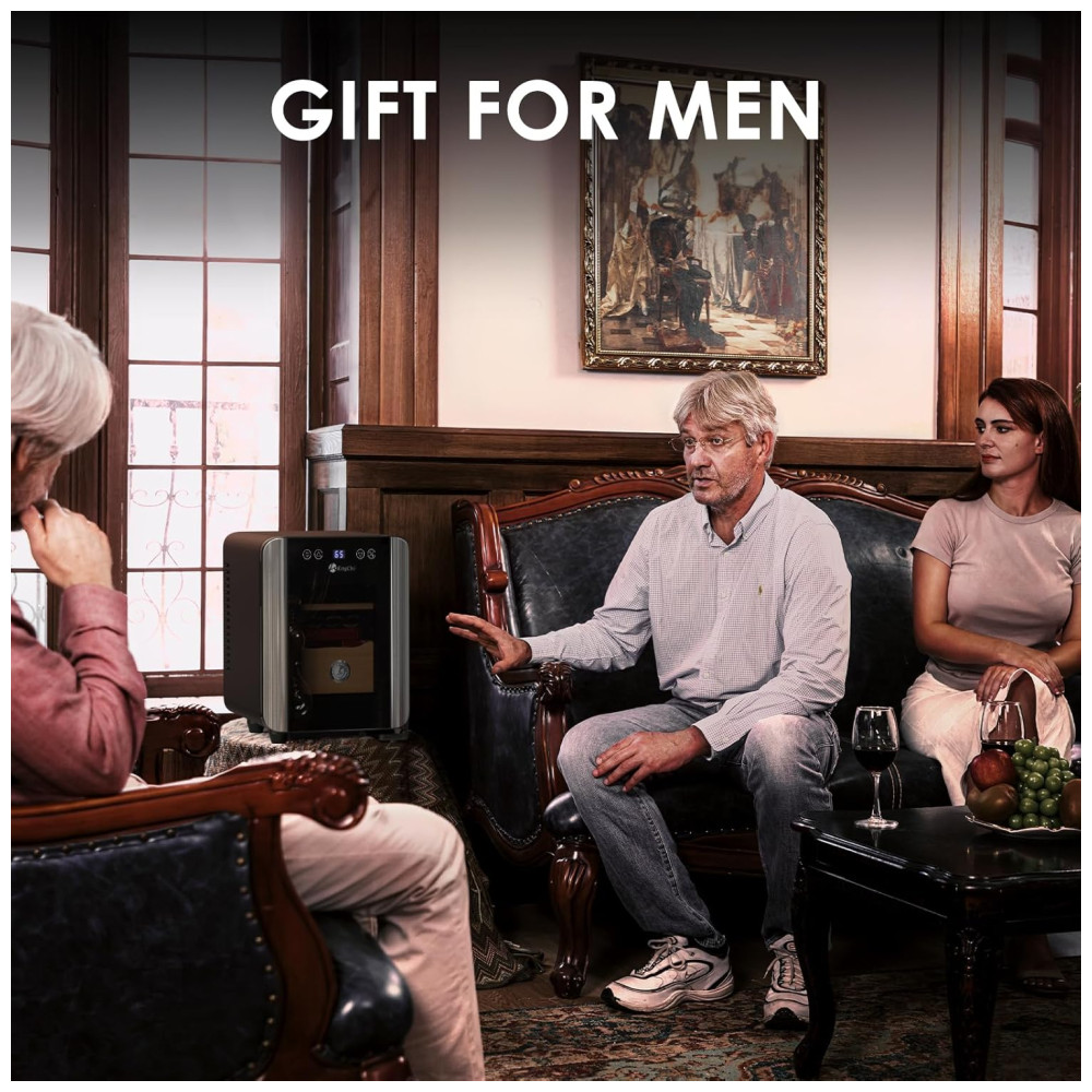 Umidor para Charutos Elétrico 8L com Controle de Temperatura Prateleiras em Madeira de Cedro Espanhol e Higrômetro 110V KingChii Preto