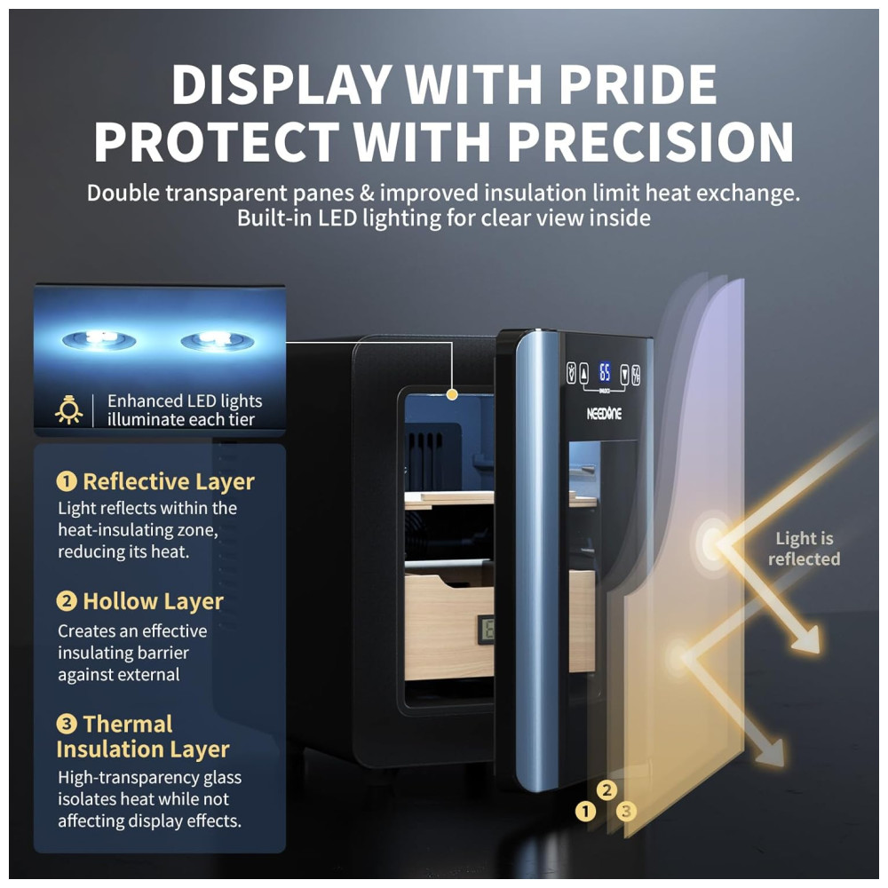 Umidor para Charutos NEEDONE 8L com Controle de Temperatura Capacidade para 80 Unidades Silenciosa e Eficiente