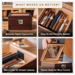 Umidor Perfeito com Elegância:Glass Top da CASE ELEGANCE com Cedro Espaçoso Higrômetro Digital Preciso Renzo Marrom