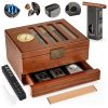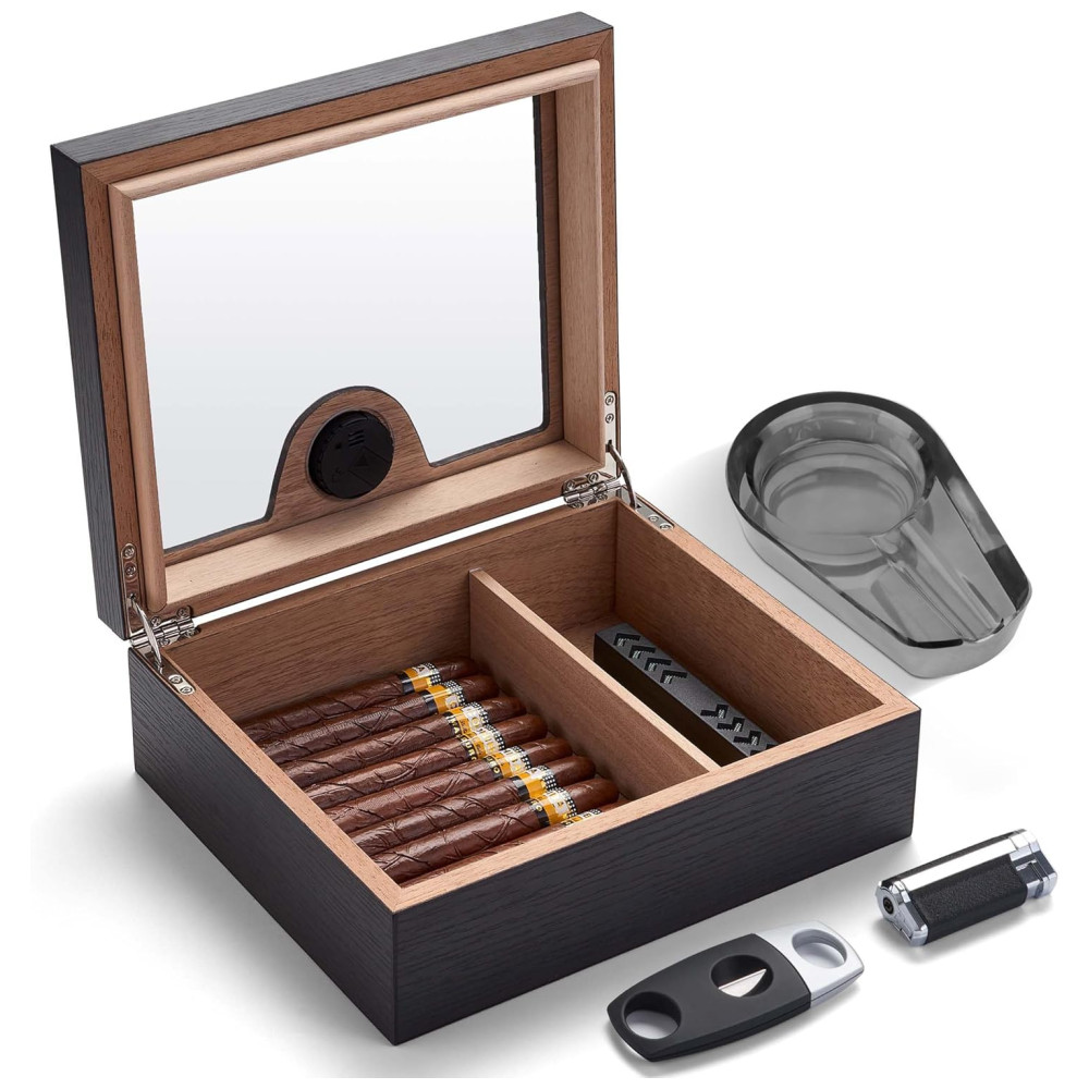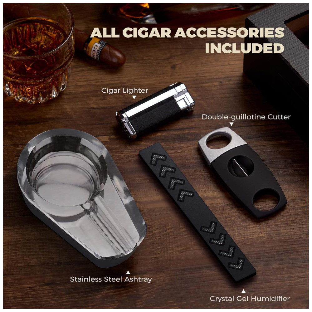 Umidor Premium: Caixa de Cedro Espanhol p/ 50 Charutos c/ Higrômetro Umidor Cortador Isqueiro e Cinzeiro – Presente Exclusivo!CINOROW