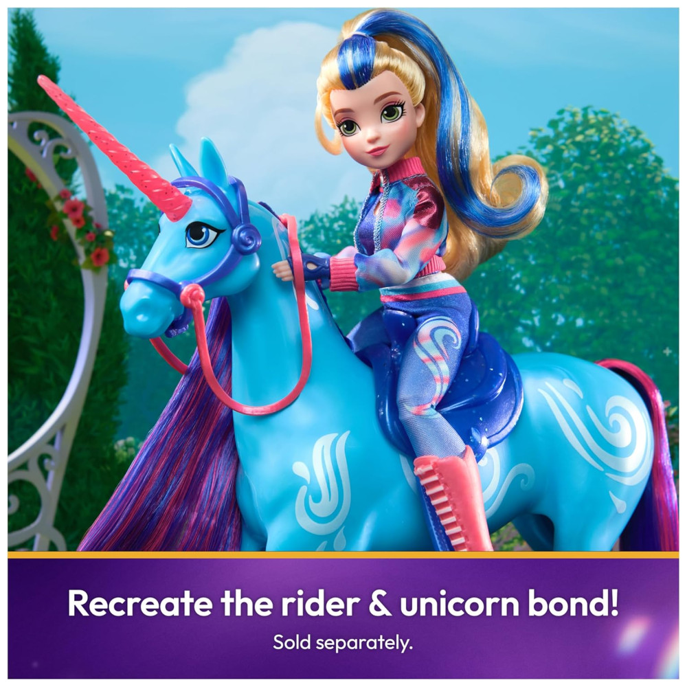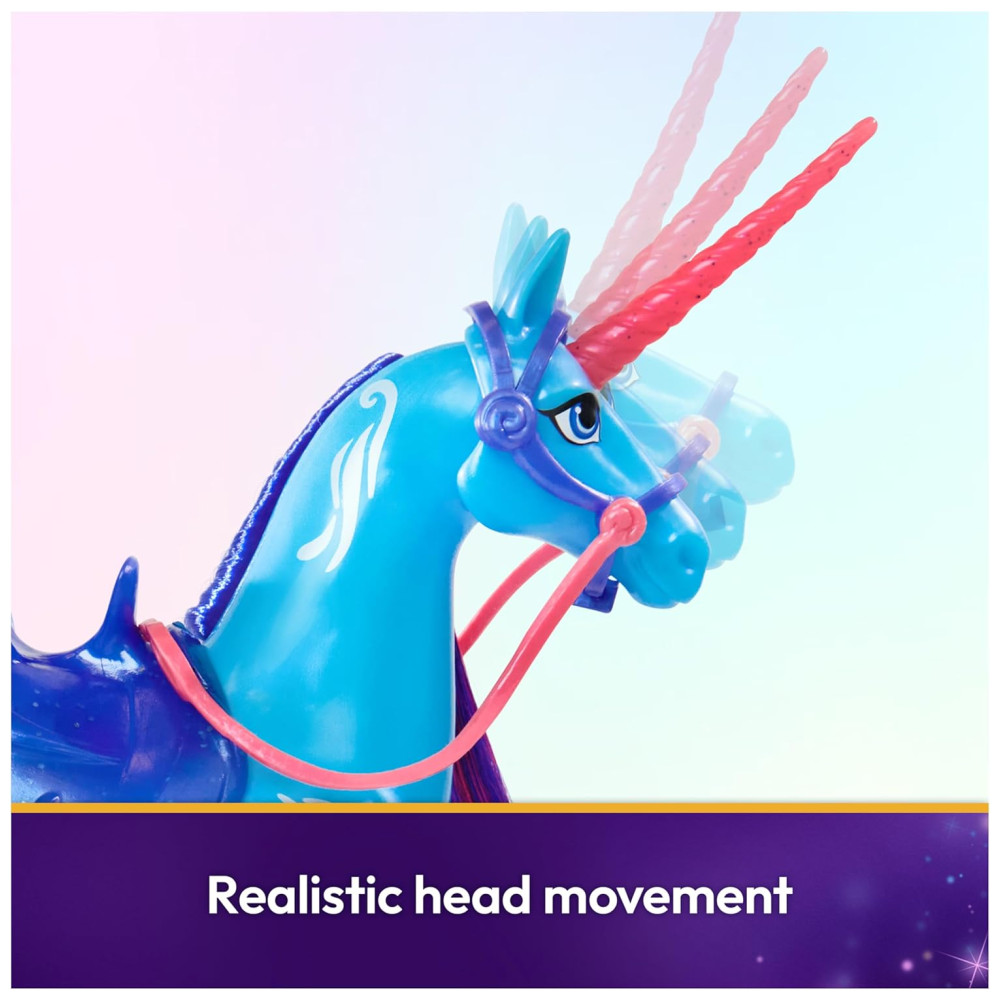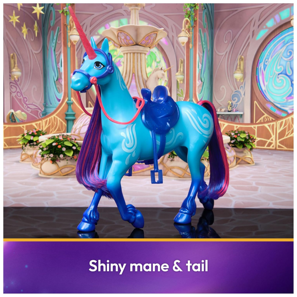 Unicórnio de 27 cm com Movimento da Cabeça e Acessórios de Equitação Ideal para Crianças que Amam Cavalos e Brincadeiras Criativas Academia Unicórnio Azul
