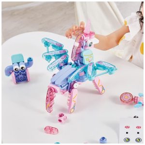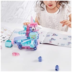 Esses brinquedos de unicórnio proporcionam uma nova e divertida experiência de construção e jogo. Com o controle remoto incluído, as crianças podem fazer suas criações avançar, reverter e criar sons divertidos. A construção com diferentes peças não só cria animais de fantasia com aparência diferente, mas também muda a maneira como cada criatura se move. A criatividade é incentivada e até mesmo o controle remoto pode ser personalizado Seu filho certamente se apaixonará por estes brinquedos de aprendizagem perfeitos.