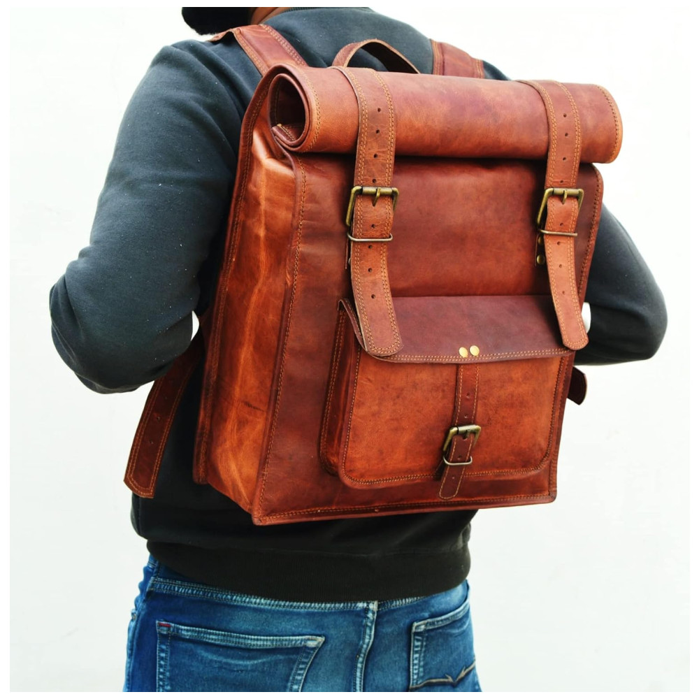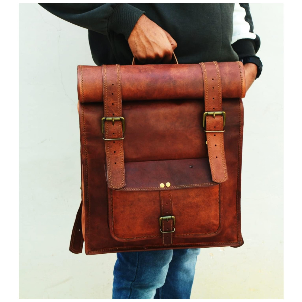 Urban Dezire Mochila Vintage de Couro para Laptop Masculina