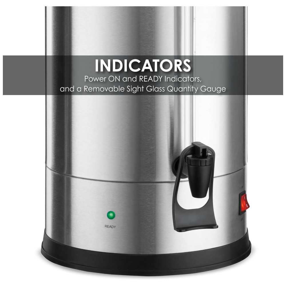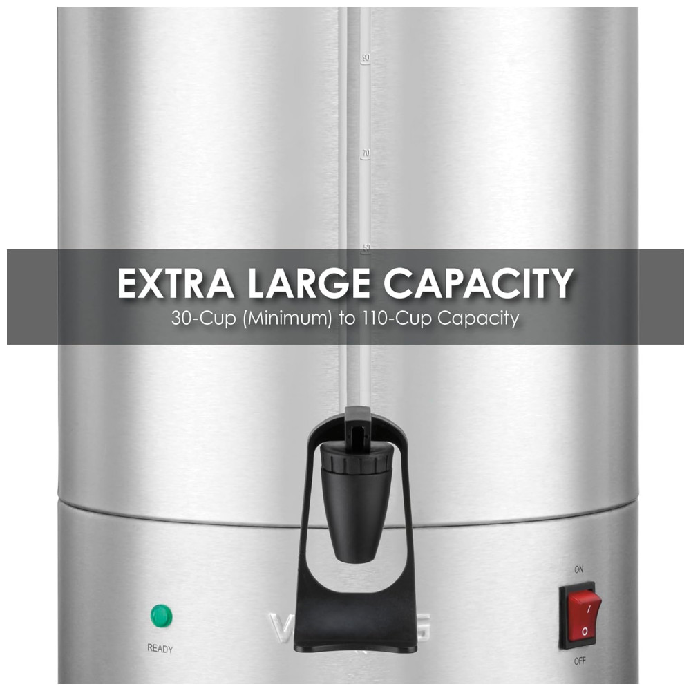 Urna de Café Comercial em Aço Inoxidável 147L com Medidor de Quantidade Luz Indicadora e Plugue de 5 a 15 fases 110V 1440W Waring WCU110 Prata