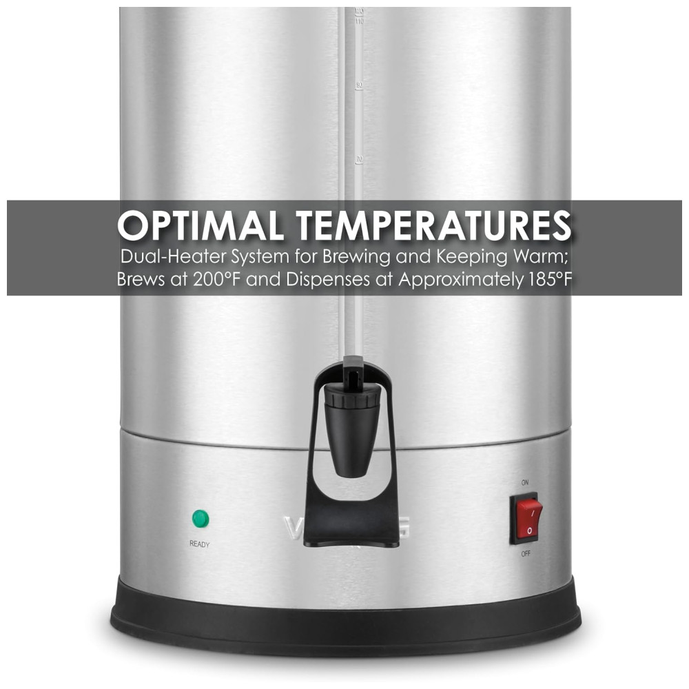 A linha de urnas de café da Waring Commercial foi projetada para oferecer desempenho premium em eventos especiais e cozinhas comerciais de grande porte. Com capacidades extragrandes e construção robusta em aço inoxidável escovado, estas urnas garantem durabilidade e estilo.