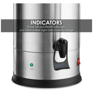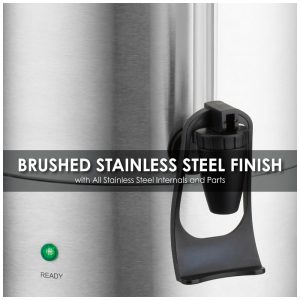 Urna de Café Comercial em Aço Inoxidável 44L com Medidor de Quantidade Luz Indicadora e Plugue de 5 a 15 fases 110V 1440W Waring WCU30 Prata