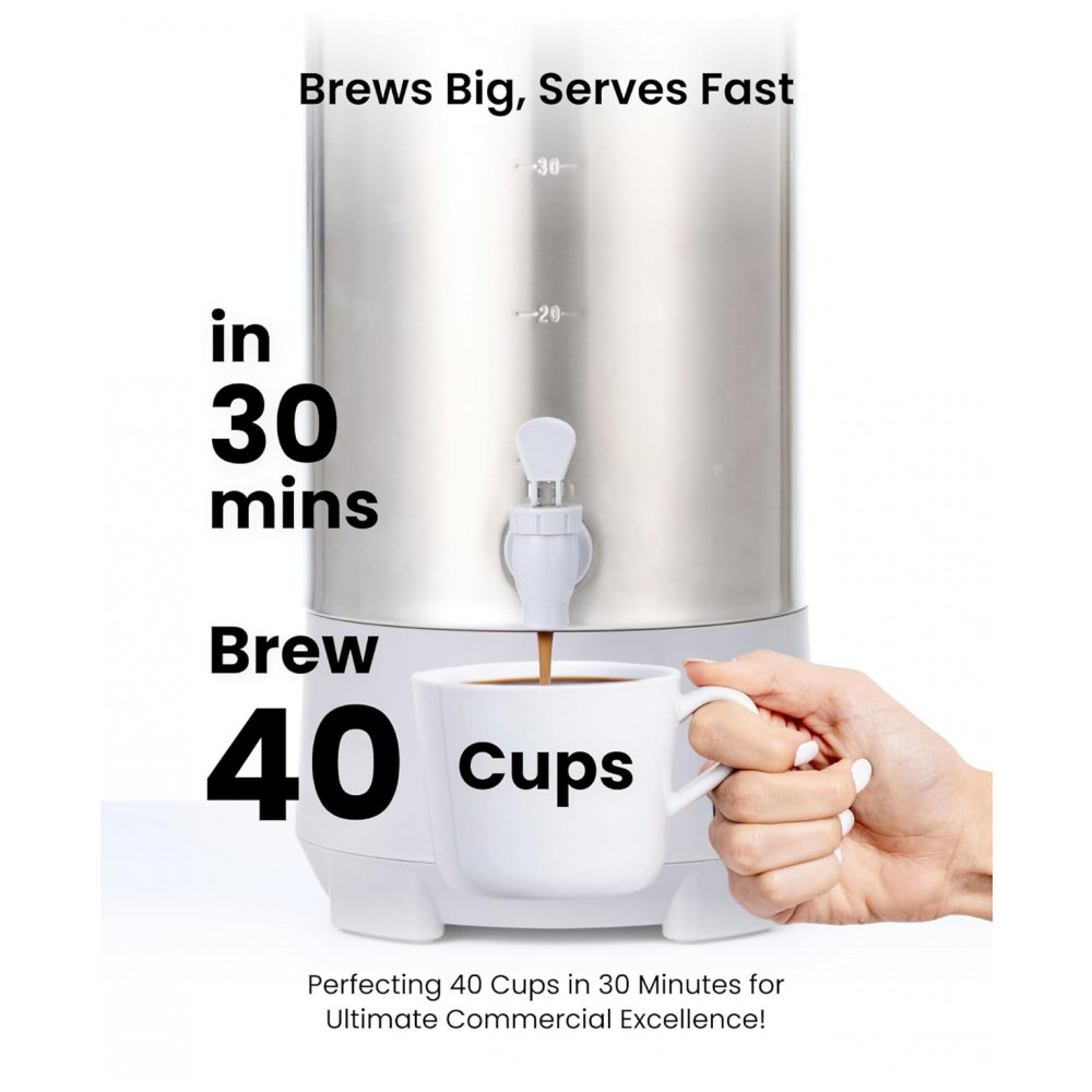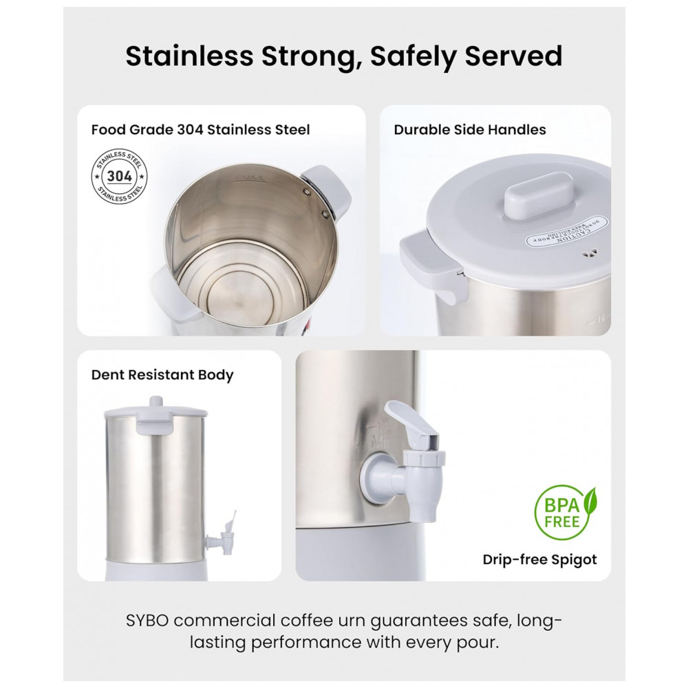 Urna de Café Comercial SYBO Aço Inox Capacidade 6L 45 Xícaras Filtro Reutilizável Alças Térmicas 110V
