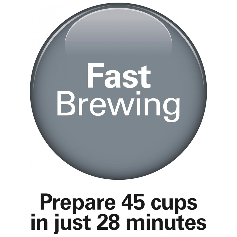 A Urna de Café Hamilton Beach 45 Xícaras é um equipamento comercial projetado para preparar até 45 xícaras de café em apenas 28 minutos, ideal para grandes eventos, escritórios e estabelecimentos comerciais. Equipado com elemento de aquecimento potente de 1500 watts e sistema de aquecimento duplo, mantém o café quente sem queimar ou superaquecer, garantindo sabor consistente.