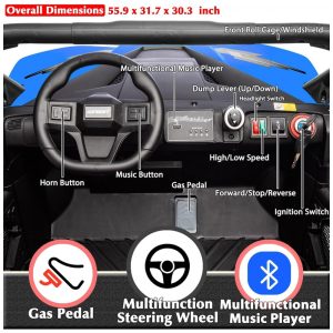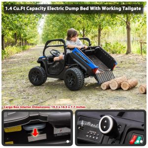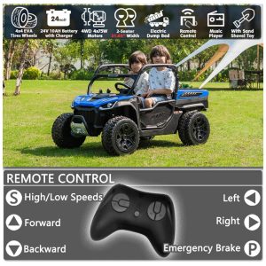 UTV Infantil Elétrico Sopbost Azul 24V 2 Lugares 4 Motores 75W Caçamba Grande Automática 4WD Pneus EVA Controle Bluetooth 10Ah