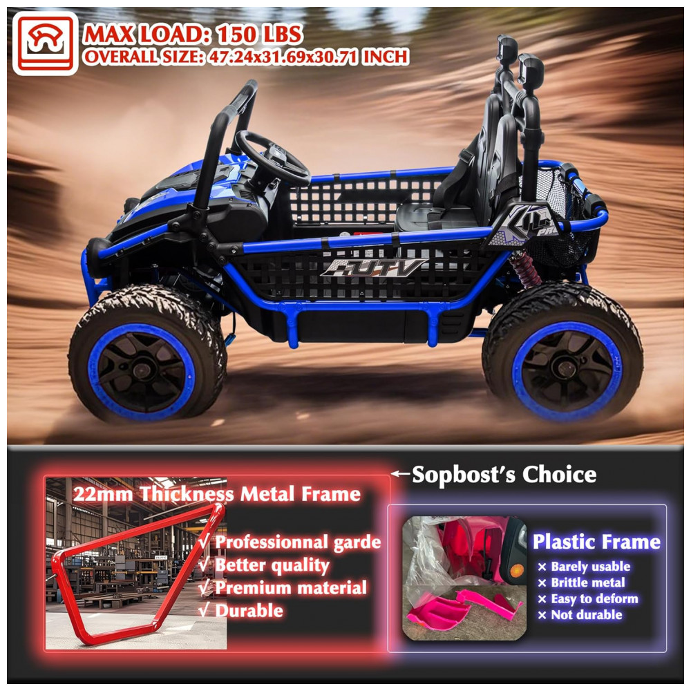 UTV Infantil Elétrico Sopbost Azul 24V 2 Lugares XXL 4 Motores 75W 4WD Pneus EVA Controle Remoto Bluetooth Estrutura Metálica