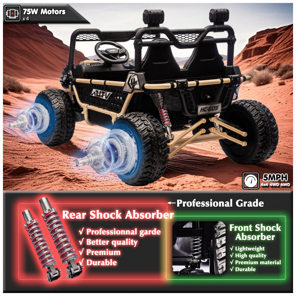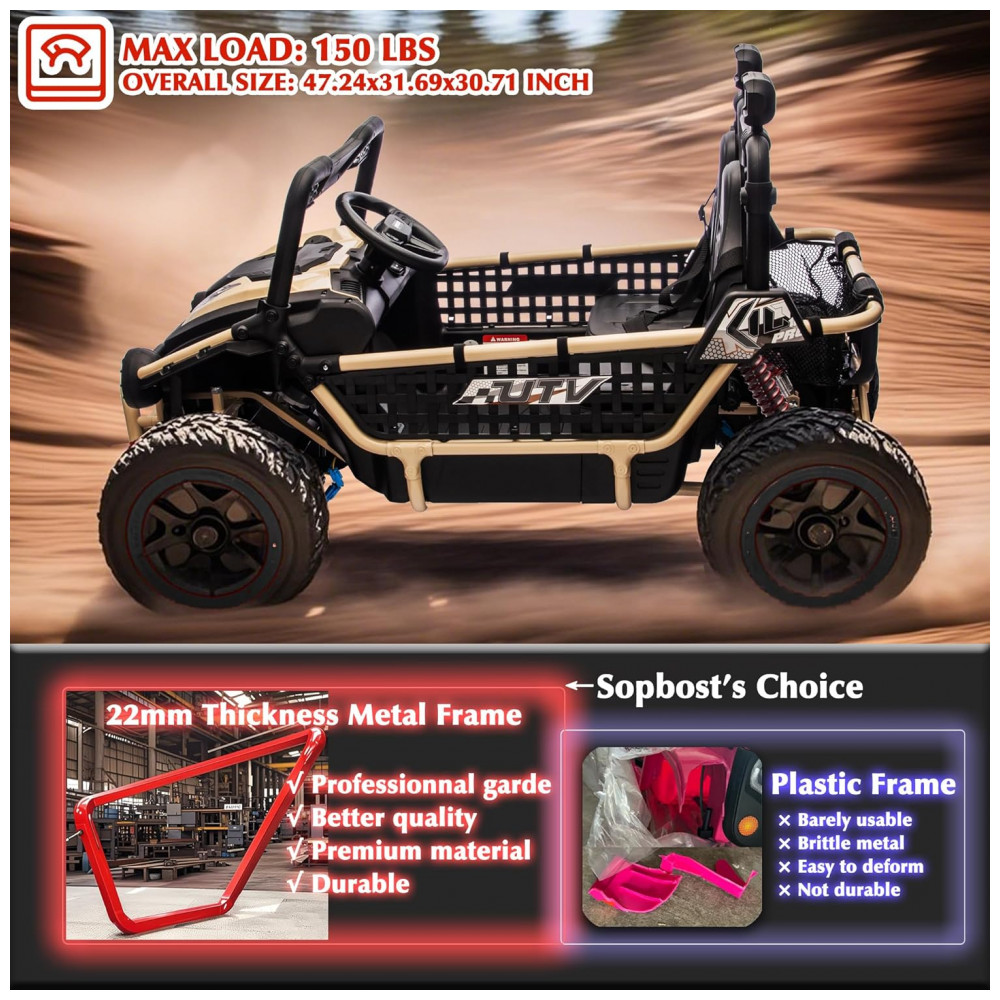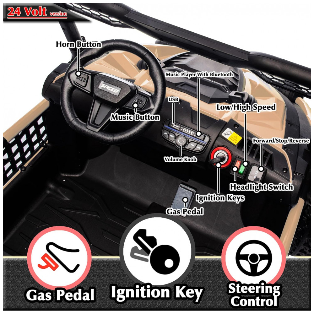 UTV Infantil Elétrico Sopbost Bege 24V 2 Lugares XXL 4 Motores 75W 4WD Pneus EVA Controle Remoto Bluetooth Estrutura Metálica