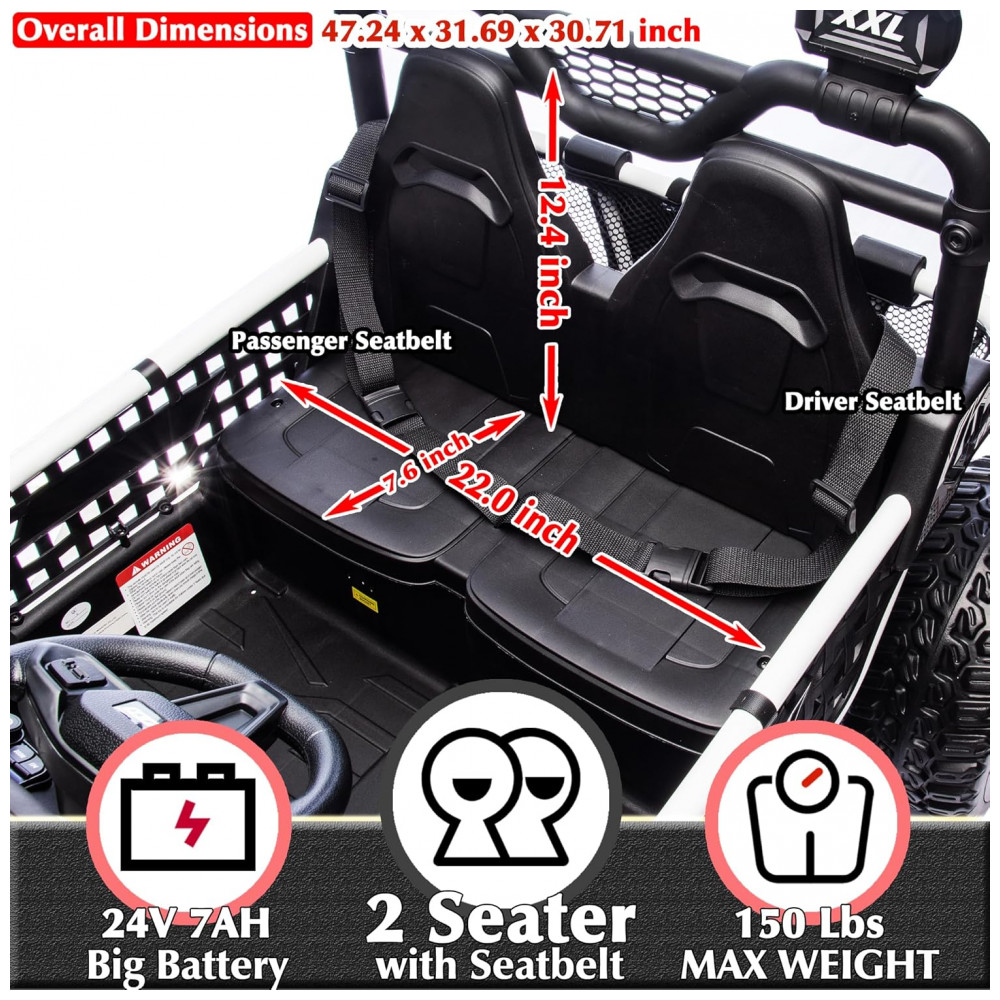 UTV Infantil Elétrico Sopbost Branco 24V 2 Lugares XXL 4 Motores 75W 4WD Pneus EVA Controle Remoto Bluetooth Estrutura Metálica