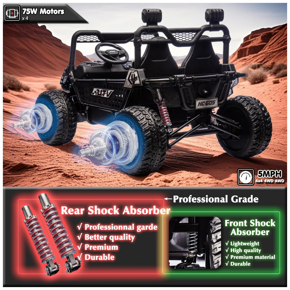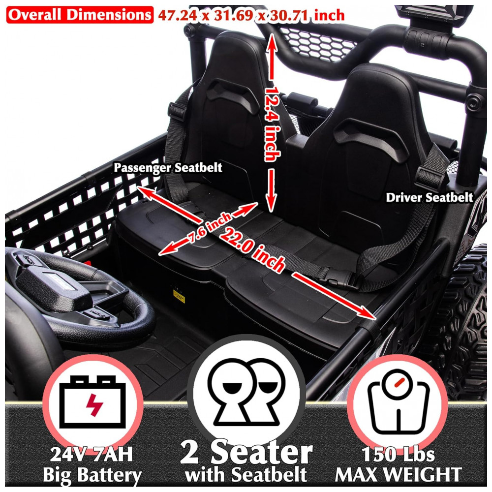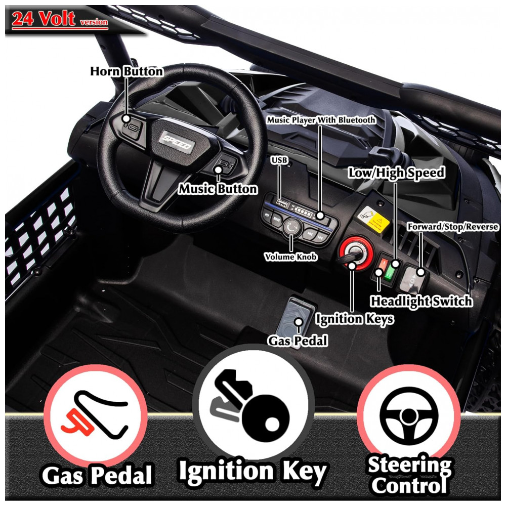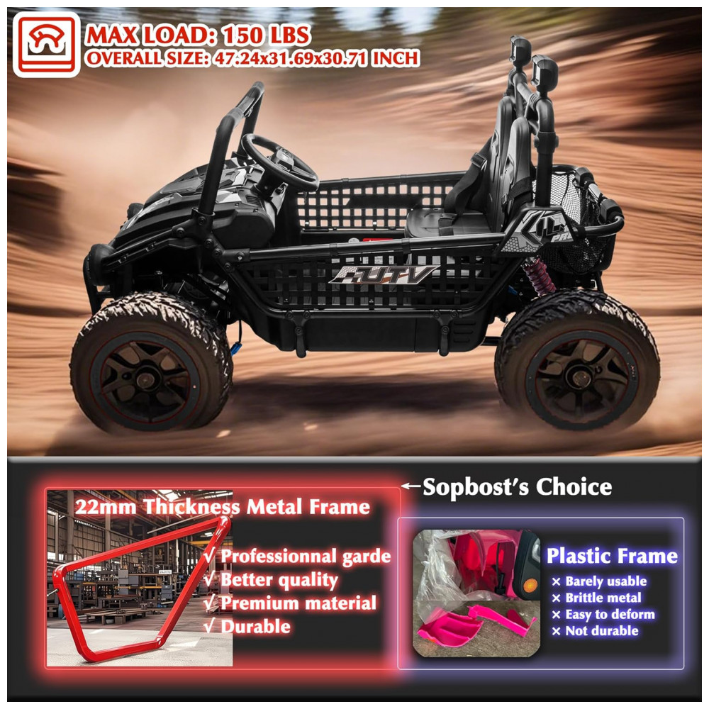 UTV Infantil Elétrico Sopbost Preto 24V 2 Lugares XXL 4 Motores 75W 4WD Pneus EVA Controle Remoto Bluetooth Estrutura Metálica