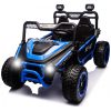 O UTV elétrico infantil sopbost entrega performance off-road para até dois ocupantes, com estrutura reforçada em metal e design XXL, assento de 22” e capacidade máxima de 68 kg. Equipado com bateria de 24V 7Ah, quatro motores de 75W, pneus EVA antiderrapantes e suspensão por molas em todas as rodas para absorção de impactos. Painel integrado com música pré-definida, entrada USB e conectividade Bluetooth para áudio durante a condução. Controle remoto parental com três velocidades e modo manual via pedal e volante. Indicadores de segurança: partida suave, estrutura estável, botão de buzina, faróis funcionais e painel sonoro. Indicado para crianças a partir de 3 anos, para aventuras em gramados, cascalho, terra e pisos residenciais.