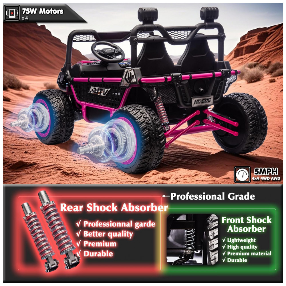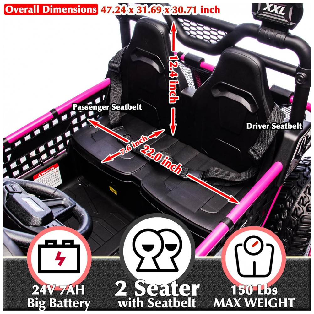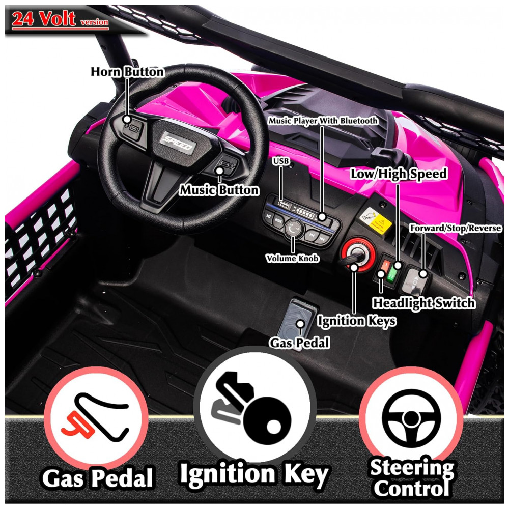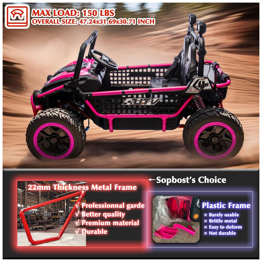 UTV Infantil Elétrico Sopbost Rosa 24V 2 Lugares XXL 4 Motores 75W 4WD Pneus EVA Controle Remoto Bluetooth Estrutura Metálica