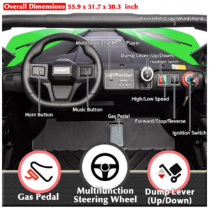 UTV Infantil Elétrico Sopbost Verde 24V 2 Lugares 4 Motores 75W Caçamba Grande Automática 4WD Pneus EVA Controle Bluetooth 10Ah