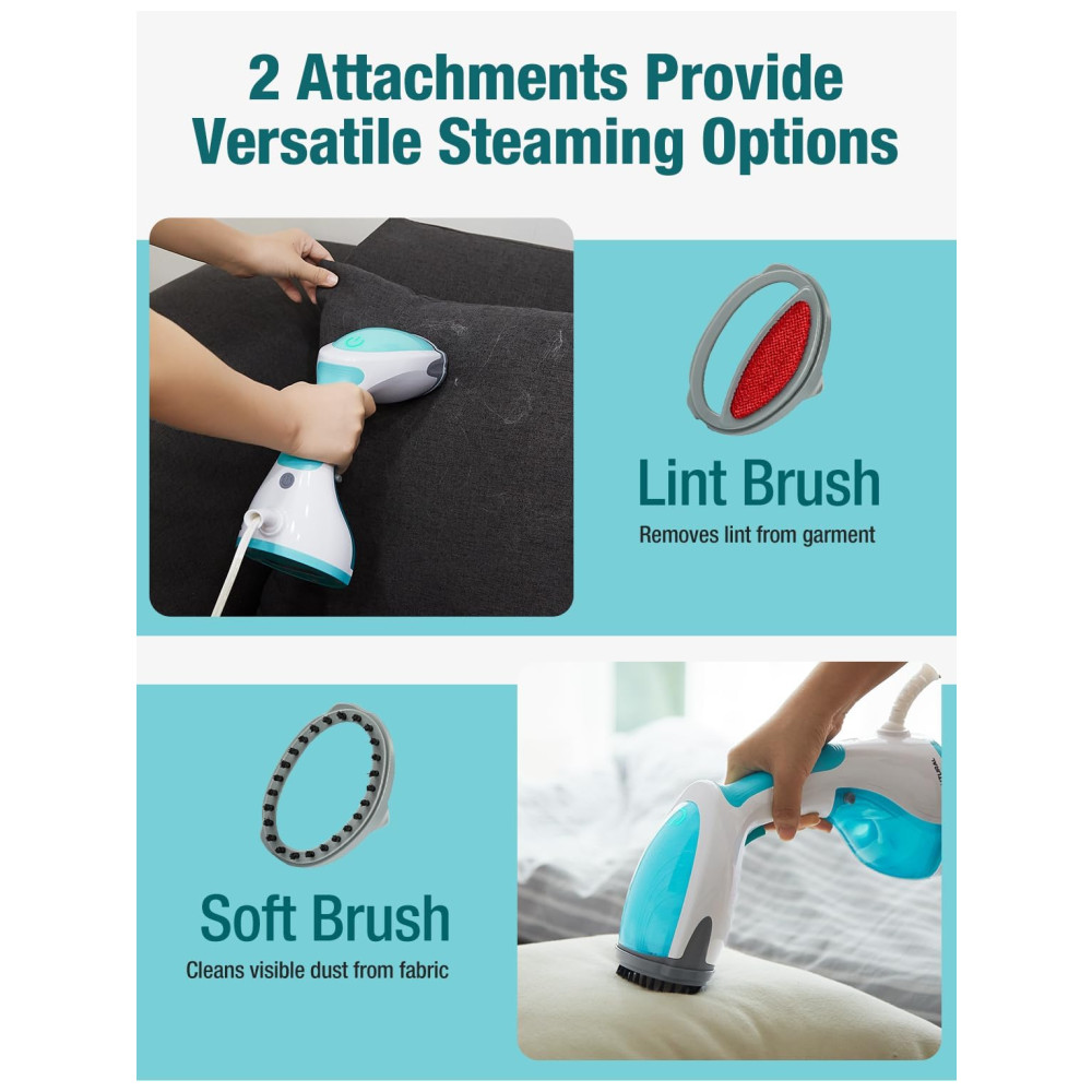 3 acessórios adicionais, escova de fiapos, escova macia e vinco fornecem opções versáteis de vaporização