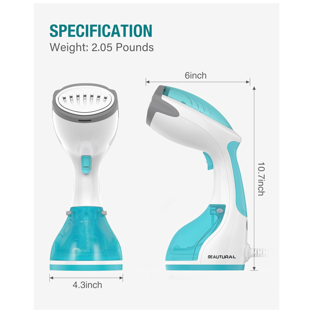Vaporizador de Roupas Portátil Aquece em 30s 240 mL 1200W 110v BEAUTURAL 722NA 0001 Azul turquesa