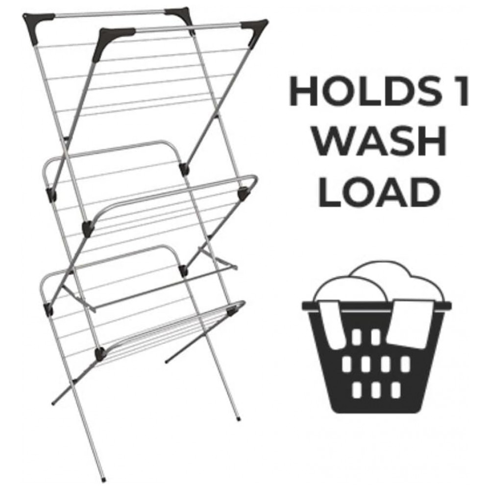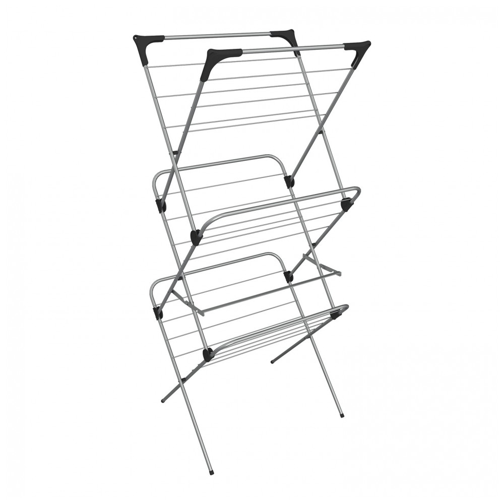 O Vileda Sprint 15 é um airer de aço de 3 camadas com um mecanismo de abertura e fechamento fácil de usar. Com um comprimento de linha de 15m e 4 ganchos extras para cabides.