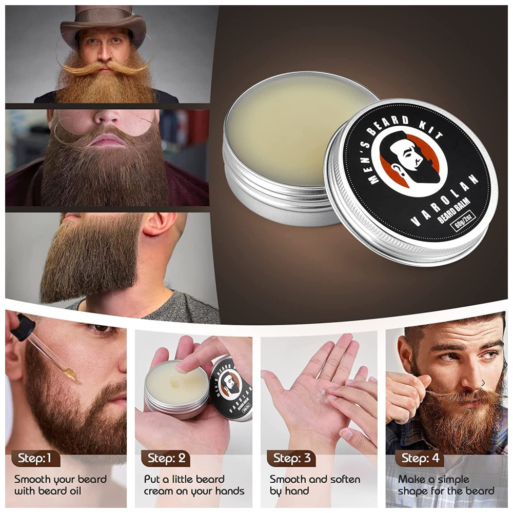 Varolan Kit para Barba Profissional Portátil com Cera e Pente 5 Itens
