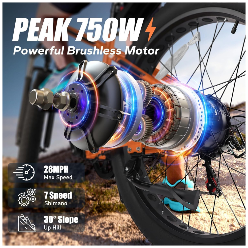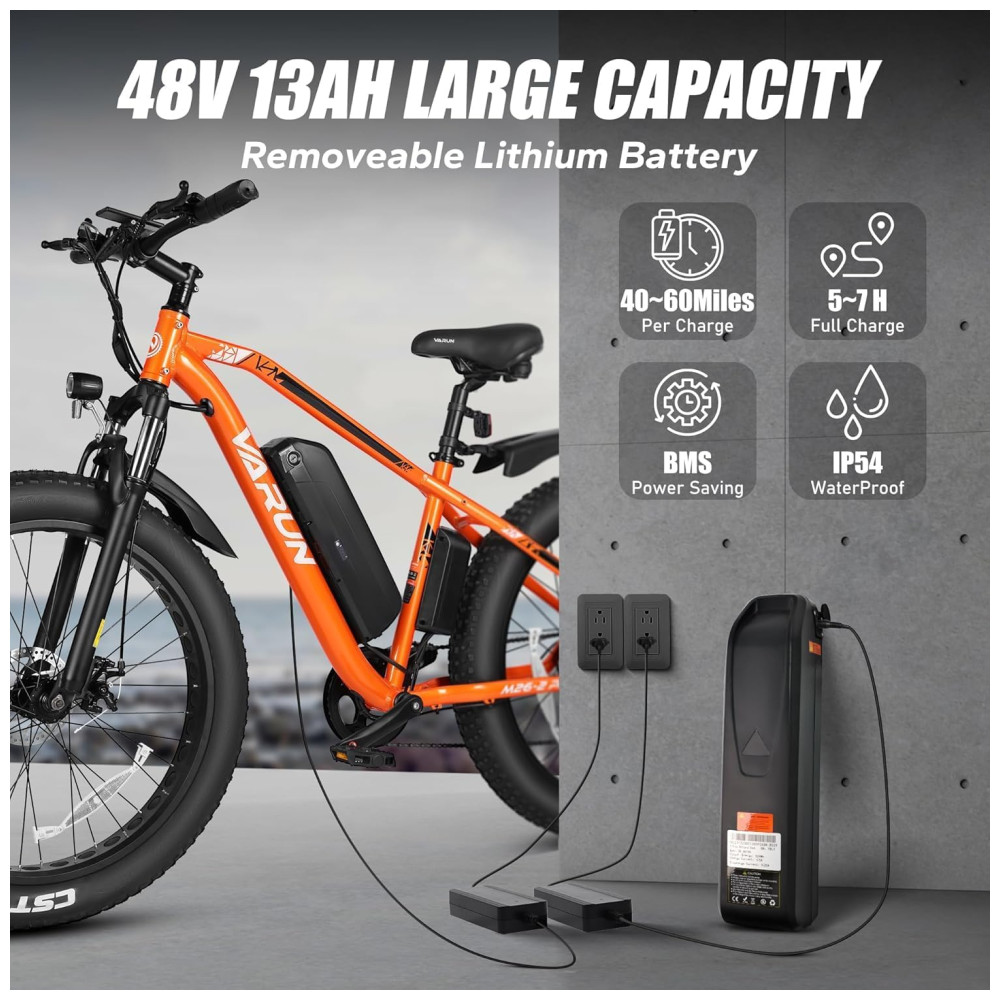 VARUN E Bikes para Homens Pico 750W Ebikes para Adultos Bicicleta Elétrica com Pneus Grossos Até 40km/h 96km com Bateria Removível de 48V 13AH Bicicle
