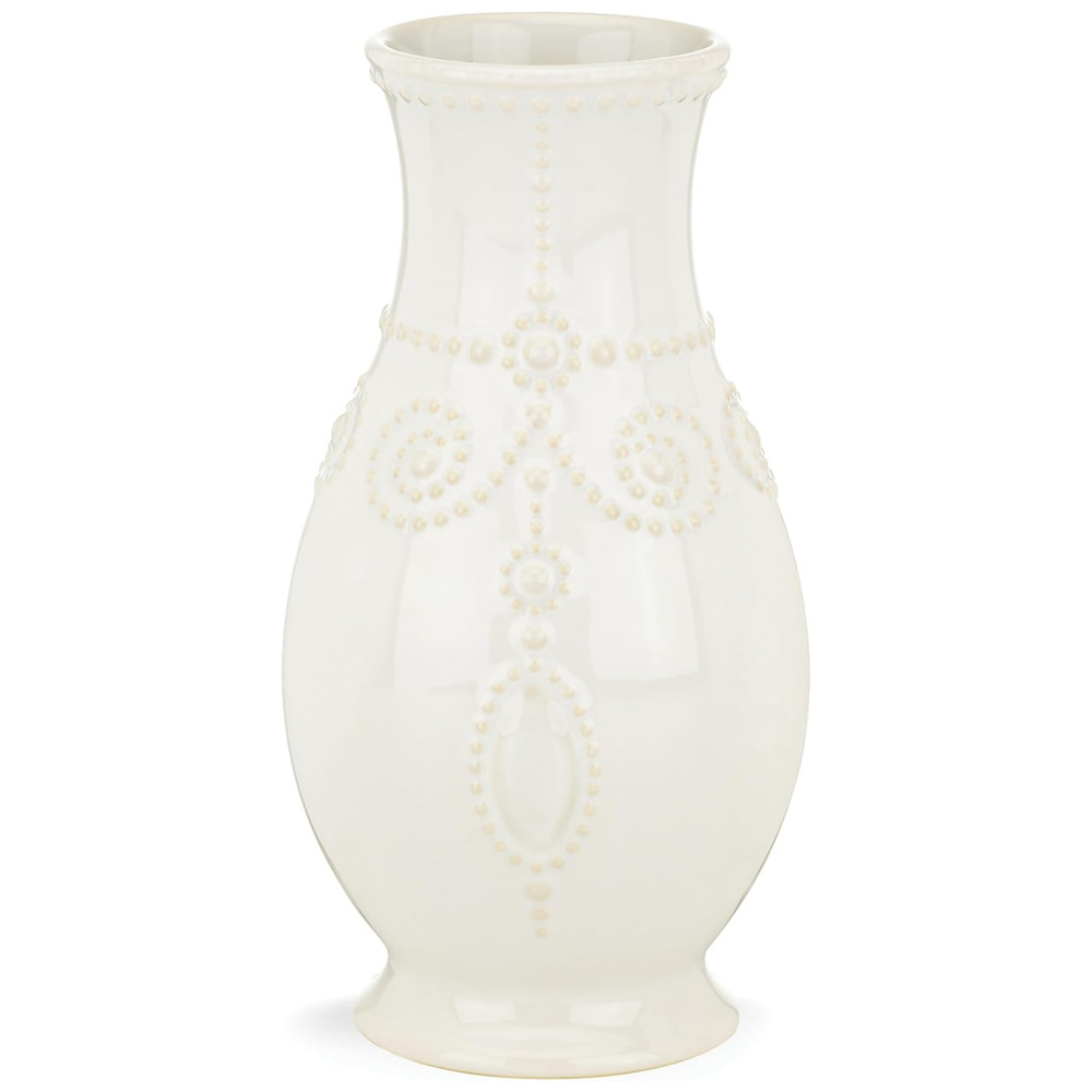 Vaso Canelado de 20 cm em Cerâmica Stoneware Lenox French Perle Branco