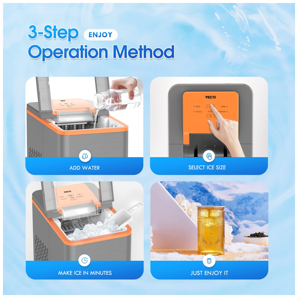 VECYS Máquina de Gelo Automática Portátil até 12kg 24H 110V Cinza