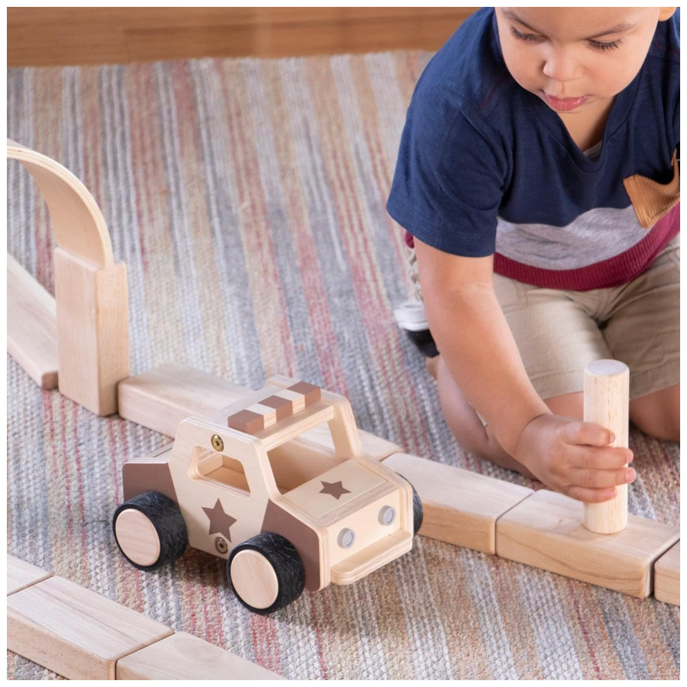 Veículo de madeira Guidecraft Wooden Police Car para brincadeiras de faz de conta e complemento de cantos de blocos